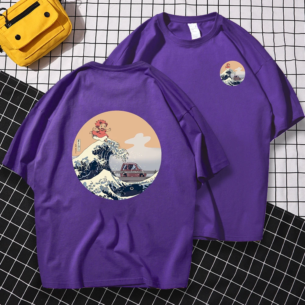 Японский принт с изображением героев мультфильма Для мужчин футболк...