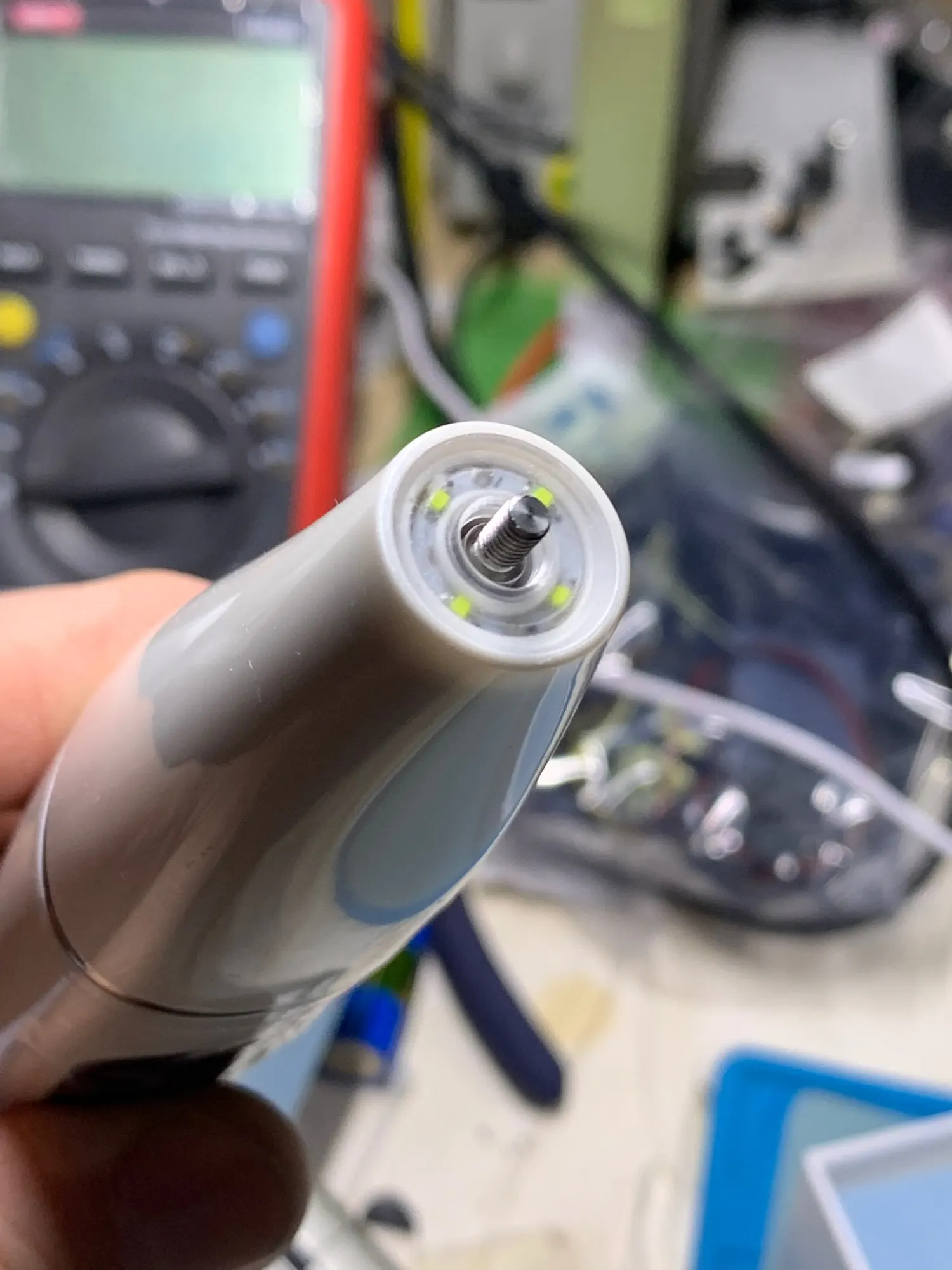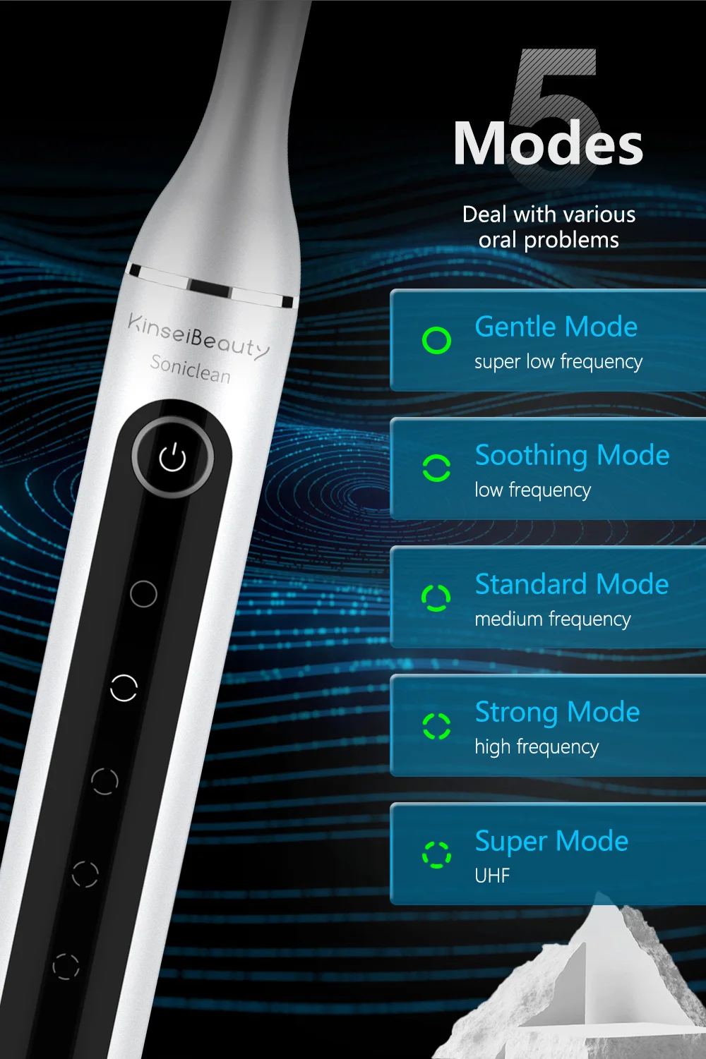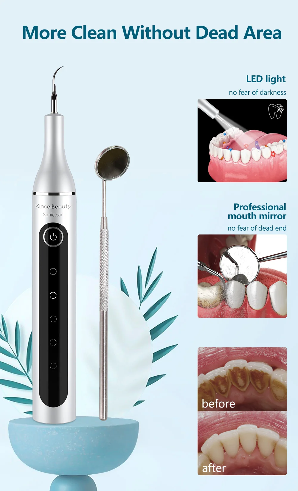 Да, работает. Вибро шпатель, имеет три шпателя, два острых и один широкий, в комплекте зеркало. Встроеный аккумулятор батарея, заряжается по старинке microUSB. Три режима, двойное нажатие, фонарик. Потребление до 1 ампера. Писк слышен когда прислоняется к зубному налету. Шпателем треш о камень или налет, происходит снятие, зубная кость не страдает, болевых ощущений нет. Требуется докупать полировалку, после полировать зубы. Рекомендую.