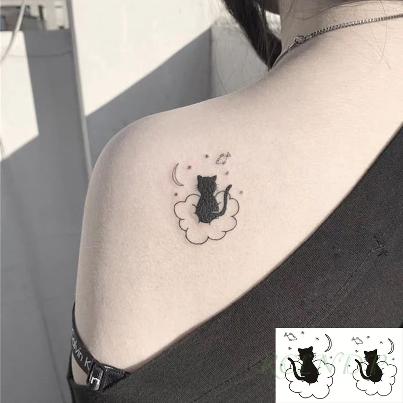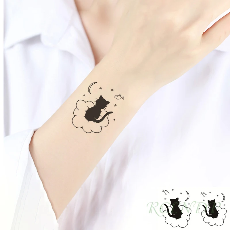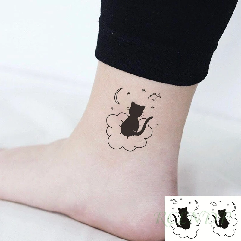Водостойкие временные тату-наклейки, кошка, рыба, луна, звезда, поддельные тату флэш-тату, шея, рука, спина, стопы, боди-арт для женщин и мужчин