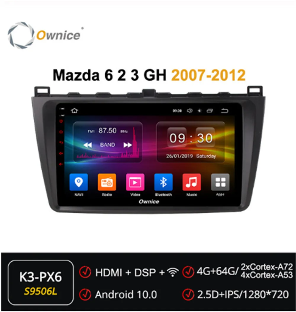 Ownice Android 10,0 Octa 8Core автомобильный DVD Navi GPS плеер forMazda 6 2 3 GH 2007 2008 2009 2010 2011 2012 автомобиль радио мультимедиа