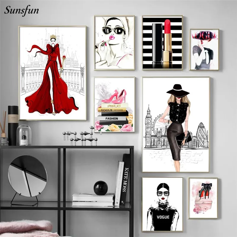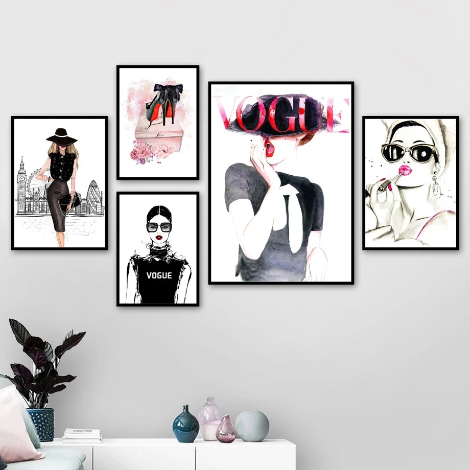 Скандинавская Мода, художественная Настенная картина на высоком каблуке с губной помадой для девушек, минималистичные плакаты и принты для украшения комнаты для девочек