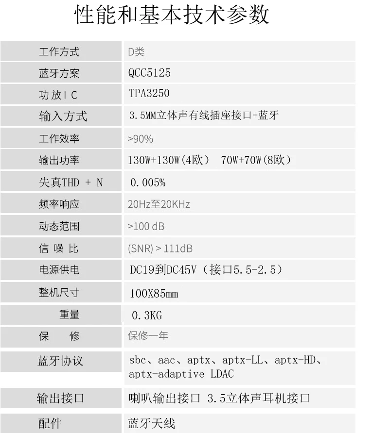 Данное изделие разработано для самых взыскательных и сильных музыкантов. Он объединяет модуль питания TPA3255 с очень низким уровнем искажений и модуль декодера Bluetooth QCC5125, который поддерживает LDAC и APTX, и интегрирует высококлассный чип декодера PCM5102A. Другие материалы не считаются стоимостью. Таким образом, прослушивание, высокая низкая частота, теплый голос и отличное проникновение высокой частоты. И с 2 регулировками высоких и низких басов, легко использоватьРуководство по эксплуатации:TPA3255-это высокопроизводительный чип усилителя мощности класса D, который обладает эффективностью класса D и может обеспечивать реальные схемы высокого качества звука. Устройство оснащено усовершенствованной интегрированной функцией обратной связи и фирменной функцией высокоскоростной коррекции ошибок драйвера gate (PurePath™Ультра HD). Данная технология позволяет устройству сохранять Сверхнизкие искажения по всему диапазону звуковых частот, при этом демонстрируя идеальное качество звука. Устройство работает в режиме AD. Когда THD составляет 10%, он может ездить до 2 315 Вт/4R нагрузки и 2 150 Вт (необсеченная мощность)/8R нагрузки, И имеет аналоговый входной интерфейс 2 VRMS, который поддерживает высокопроизводительный ЦАП (например, PCM5242 TI) бесшовное соединение. Помимо отличной производительности звука, TPA3255 также имеет два основных преимущества: высокая энергоэффективность и сверхнизкий уровень потерь холостого хода (менее 2,5 Вт). Это может быть достигнуто с МОП-транзистором 85mR и оптимизированной схемой драйвера ворот. По сравнению с традиционной дискретной реализацией, это решение может значительно уменьшить потери холостого хода.