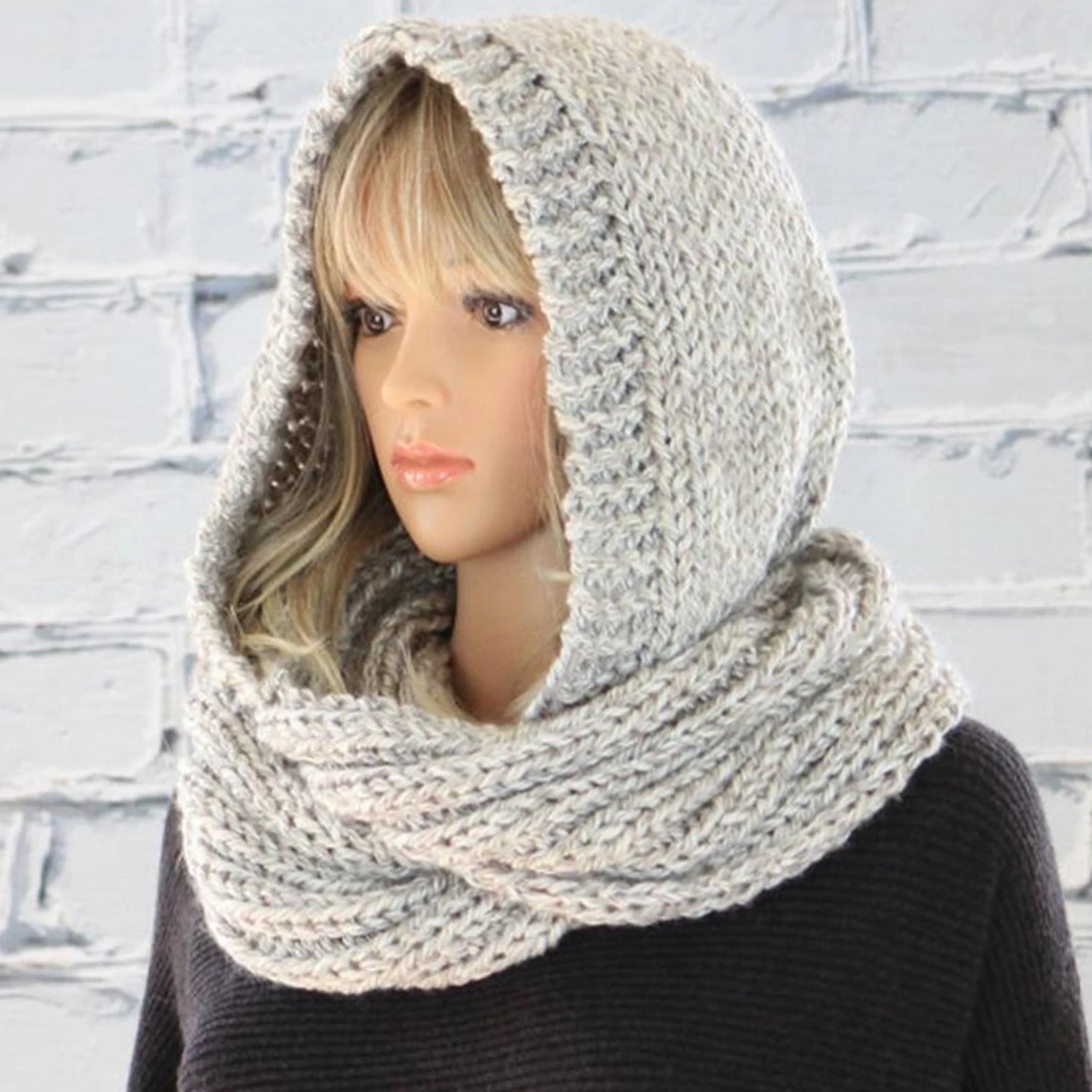 Шарф-шапка женский шерстяной, осенне-зимний, вязаный, в стиле ретро