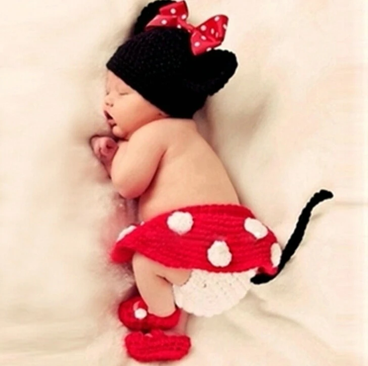 Набор одежды для маленьких девочек ручной работы, милый мультяшный вязаный шерстяной костюм для новорожденных, модные костюмы для косплея, фотореквизит