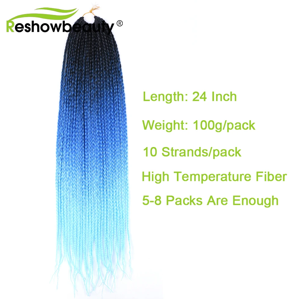 Косички в коробке, косы для вязания, волосы 22 дюйма, 24 корня/упаковка, 2/3 тон, Омбре, синтетические волосы кроше для наращивания Reshowbeauty