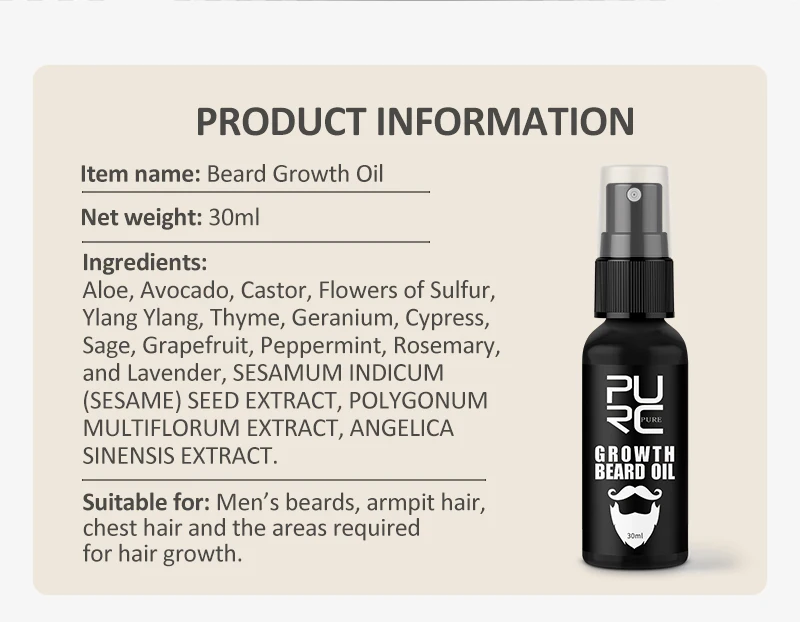 Масло для бороды PURC для мужчин, органическое масло для роста воло...