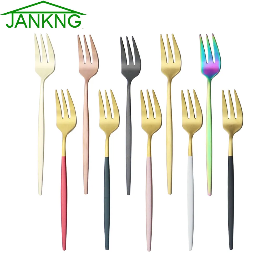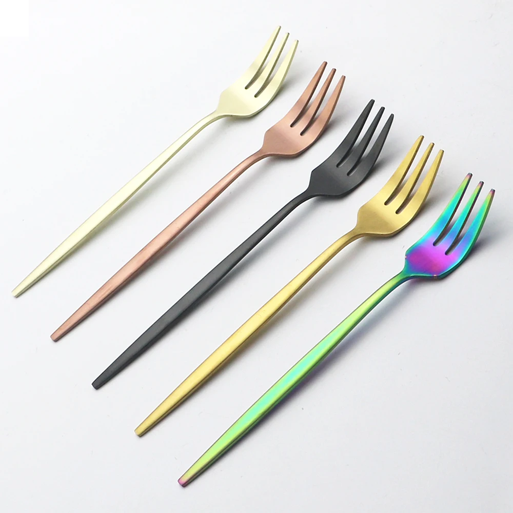 Набор вилок для торта, 6 шт., матовые столовые приборы для десертов, фруктов, салатов, вилки, красочные столовые приборы из нержавеющей стали