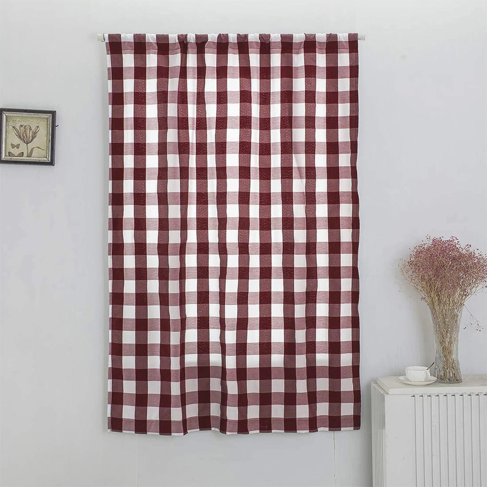 Кухонная короткая оконная штора в клетку с отверстием, регулируемые...