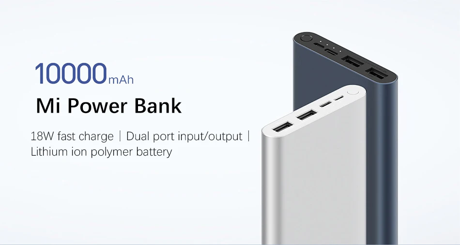 Внешний аккумулятор XiaomiMiPowerBank3, ёмкость 10000мАч, мощность18Вт, портыMicroUSB и USBC, подойдёт для техники на Android