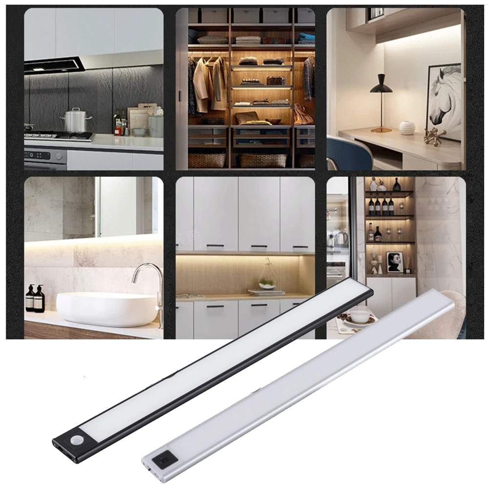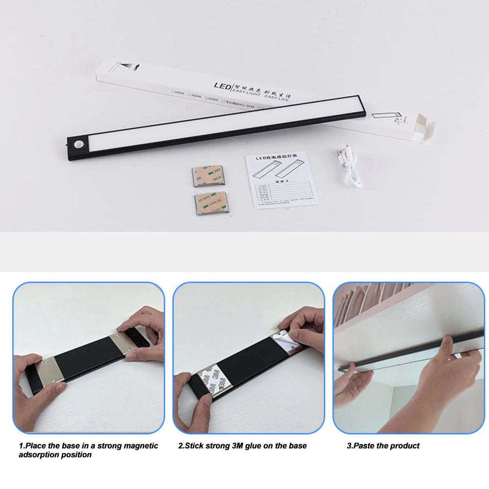 PIR датчик движения Тепловая светодиодная подсветка под шкаф USB Rechargealbe Магнитный ручной датчик развертки ультра тонкий алюминиевый корпус ночника