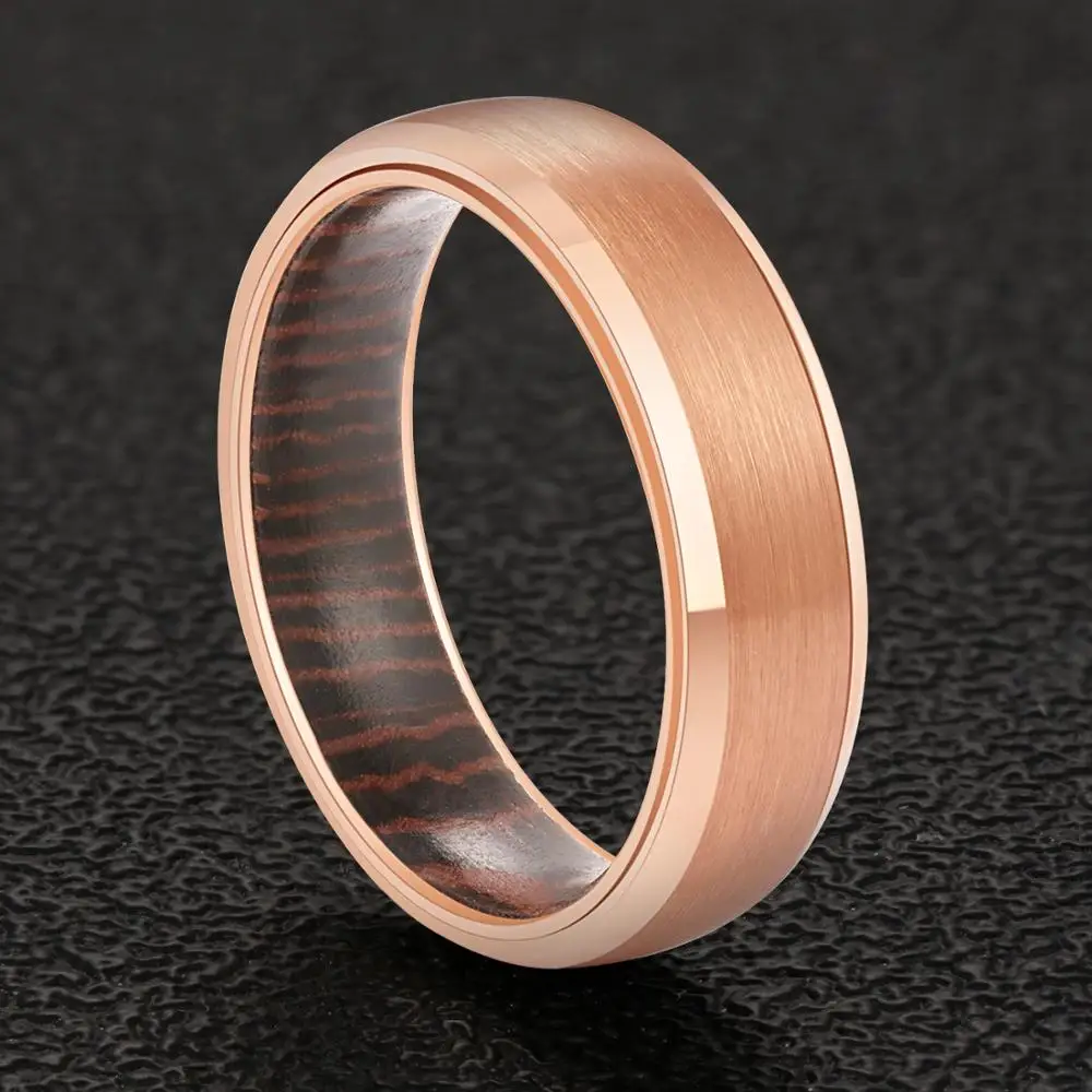 KeywordRose Gold Tungsten Ring Wenge Wood Liner Inside