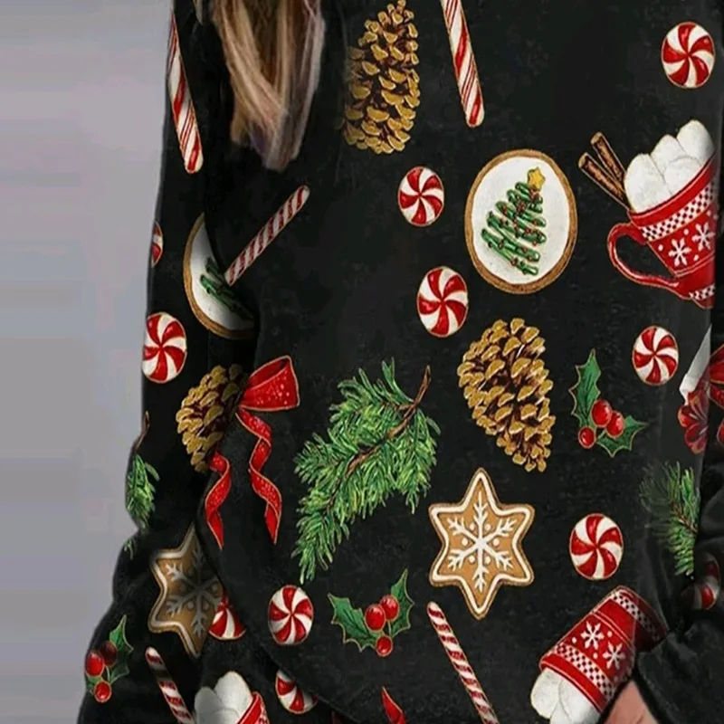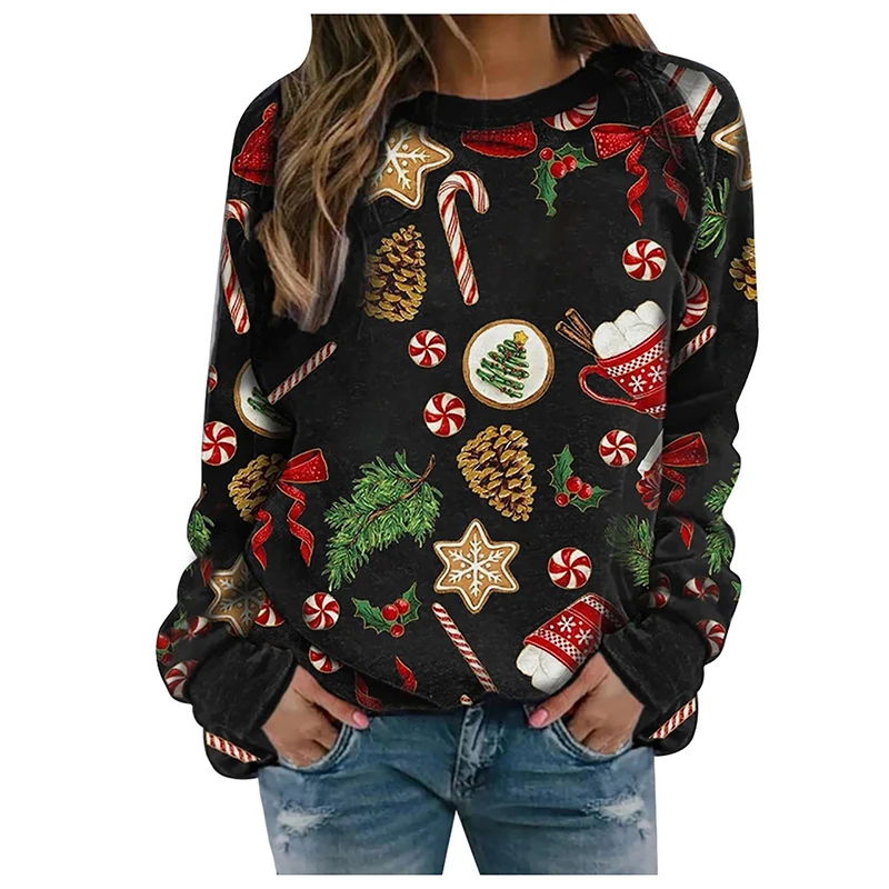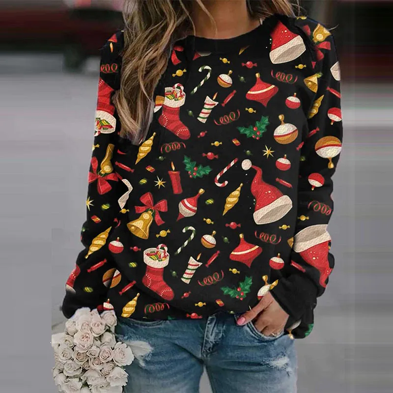 Осенне-зимний вязаный Топ с рождественским принтом с круглым вырезом и длинными рукавами, Женский мягкий короткий флисовый свитер, Рождественская одежда