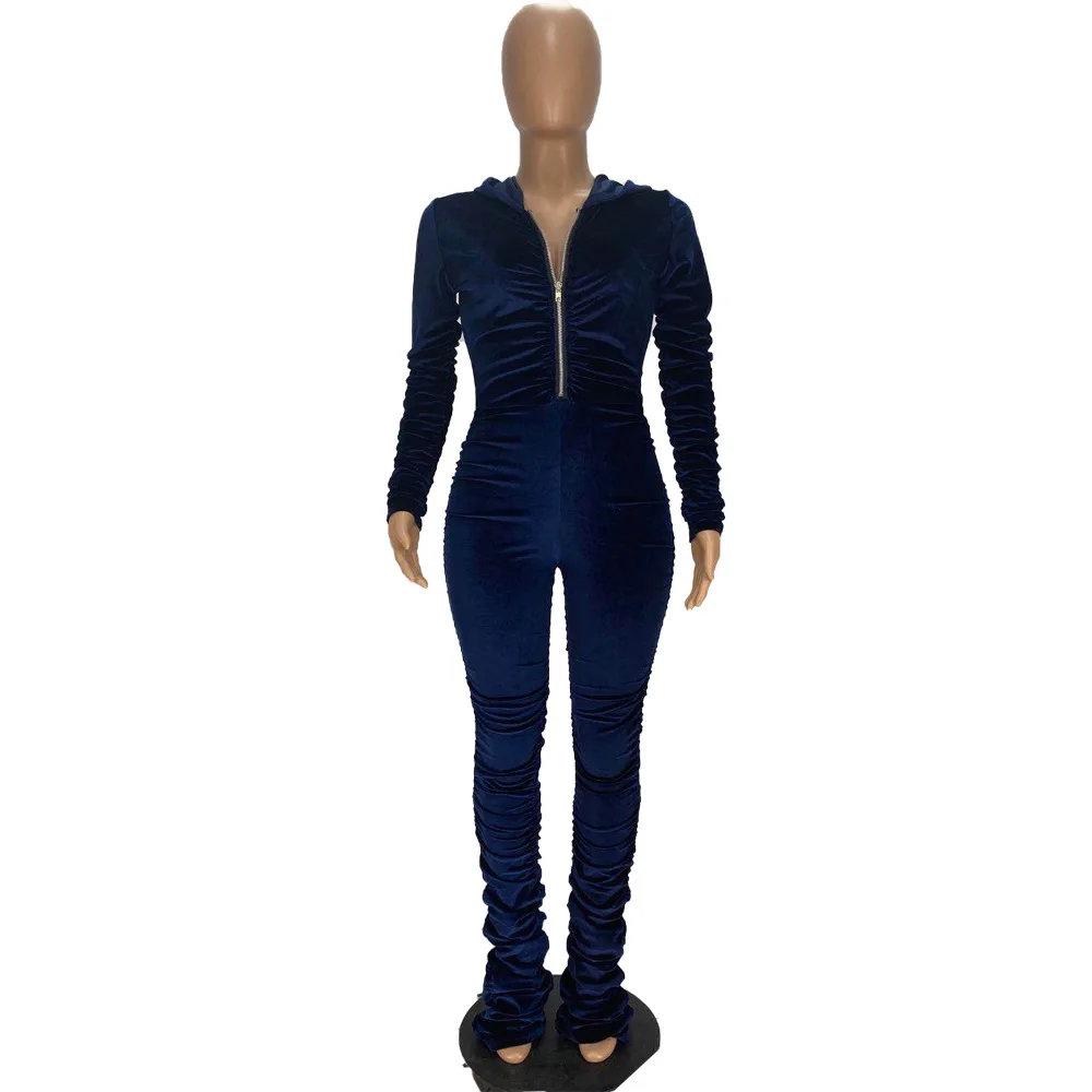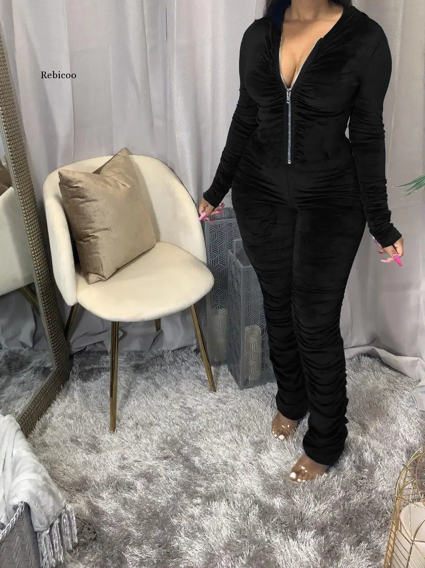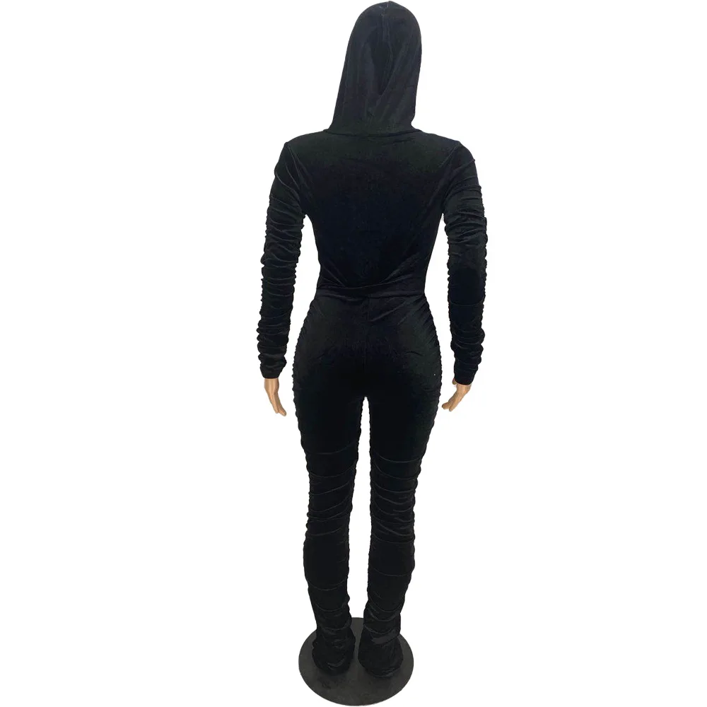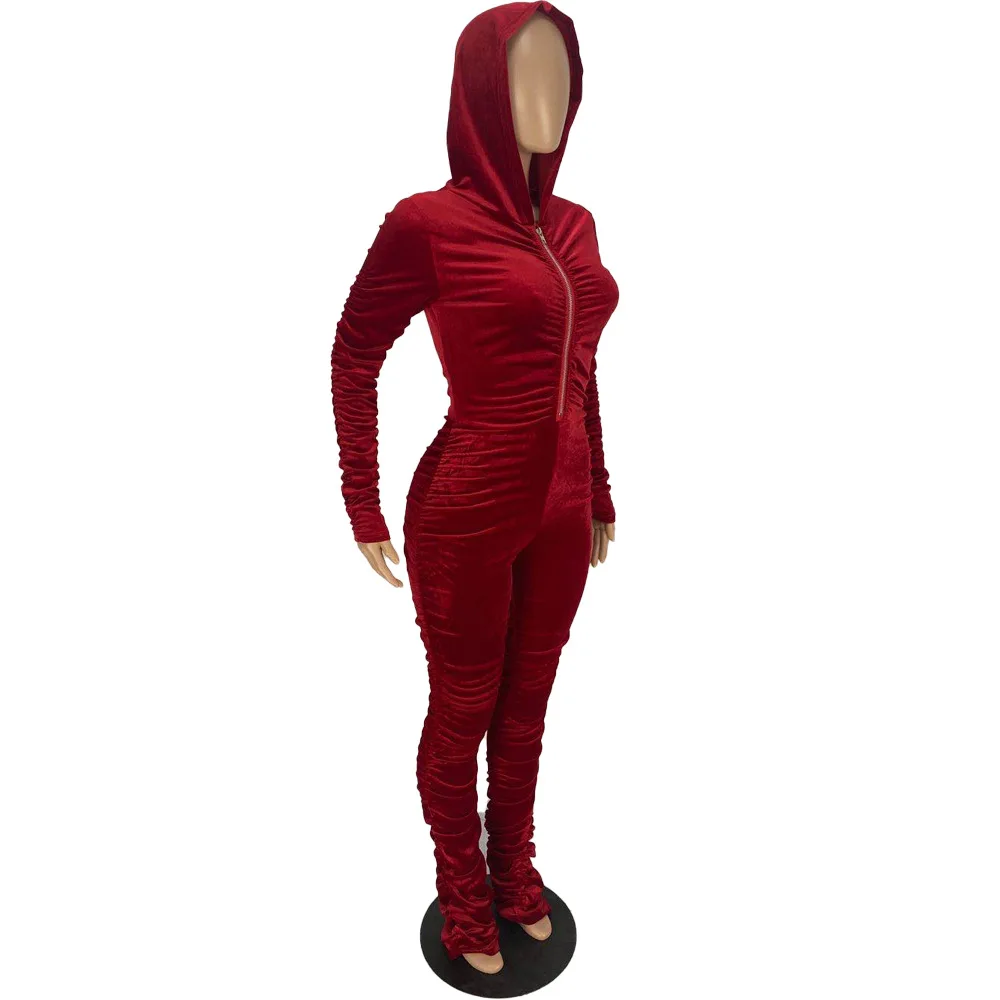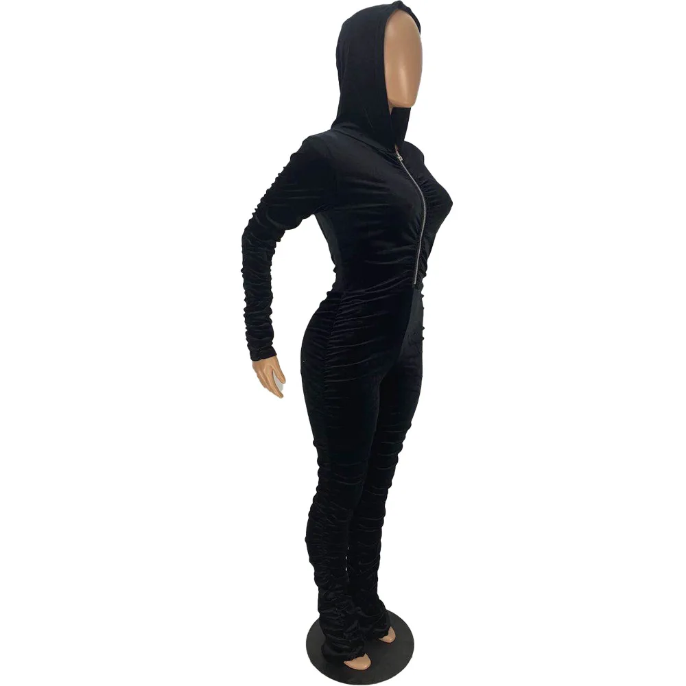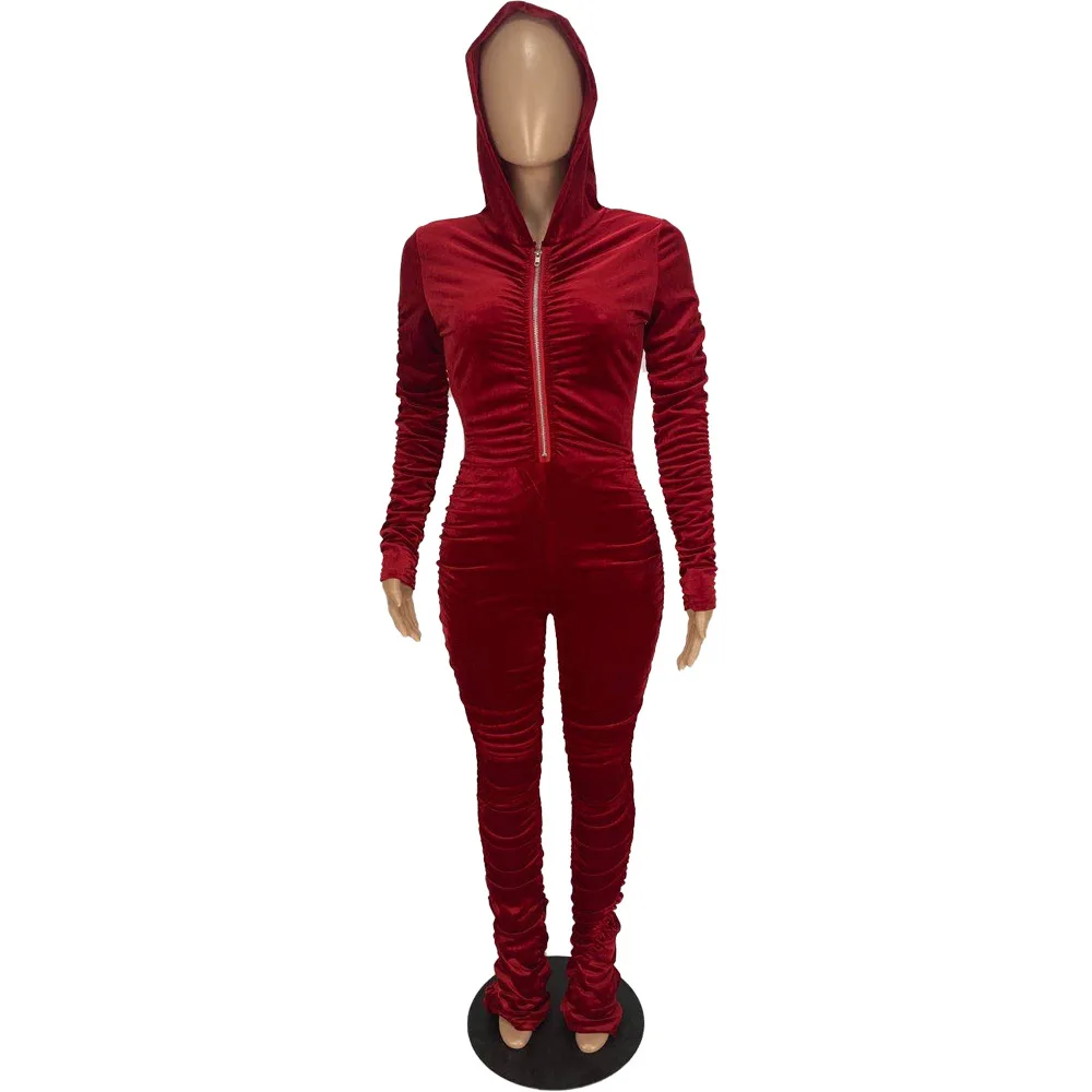 Новая Осенняя уличная бархатное с защипами платье облегающие худи комбинезон Для женщин Активный наборный куртка на молнии с капюшоном и комбинезон Одна деталь в целом