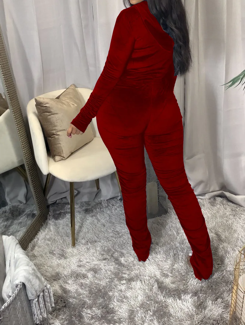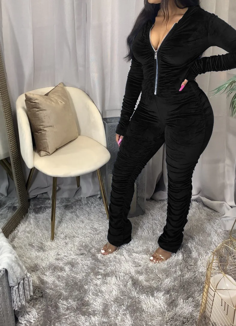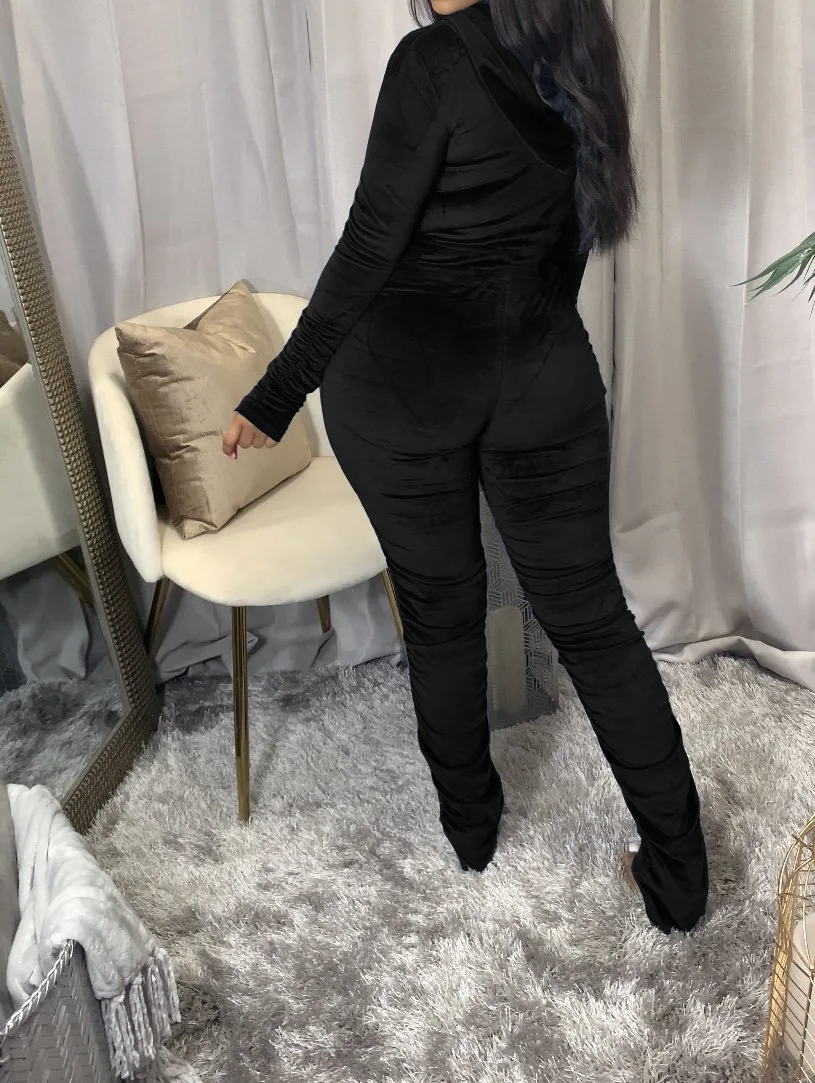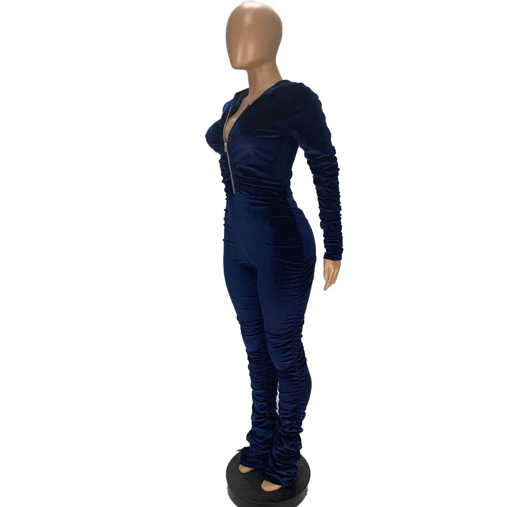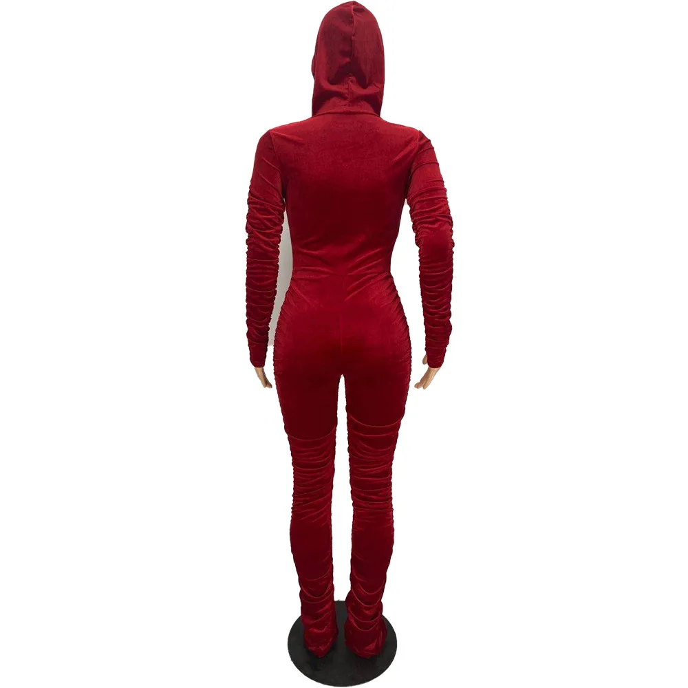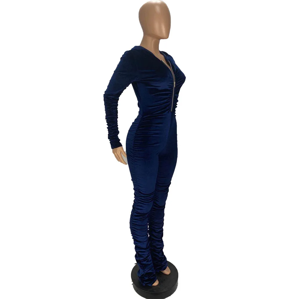 Новая Осенняя уличная бархатное с защипами платье облегающие худи комбинезон Для женщин Активный наборный куртка на молнии с капюшоном и комбинезон Одна деталь в целом