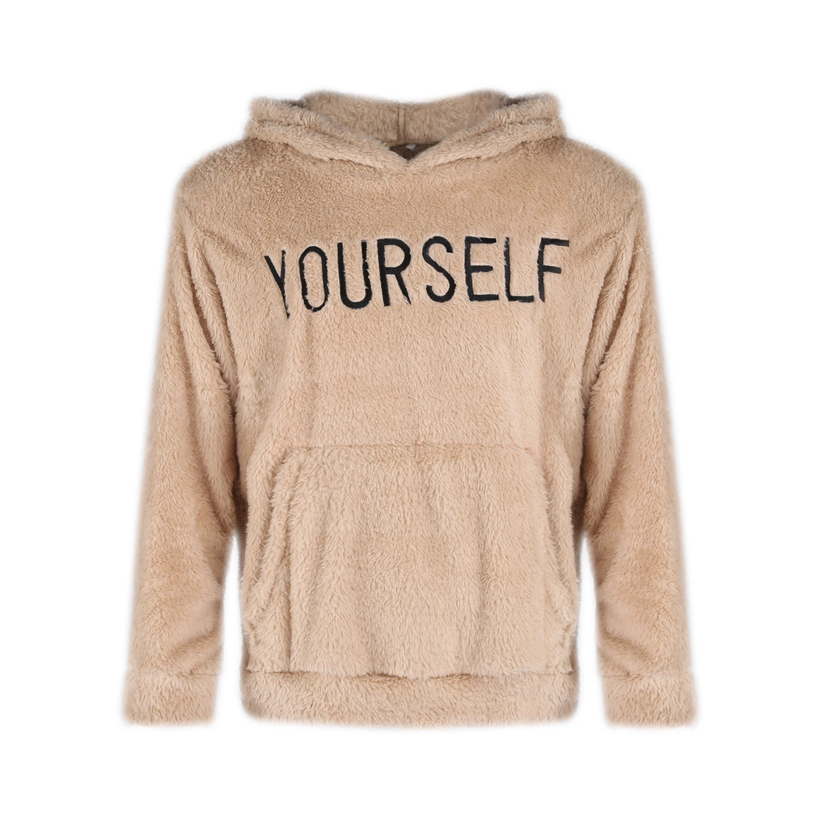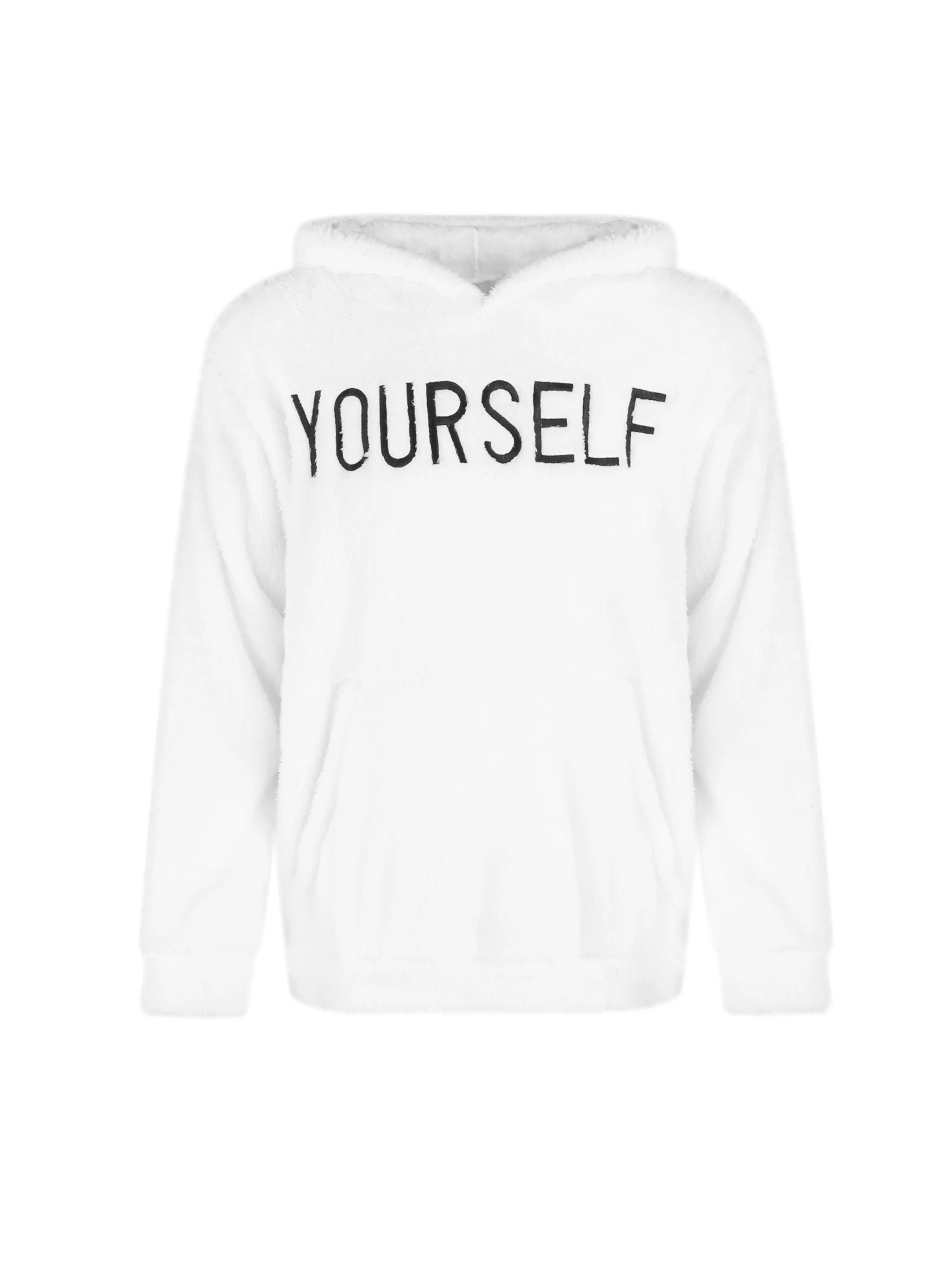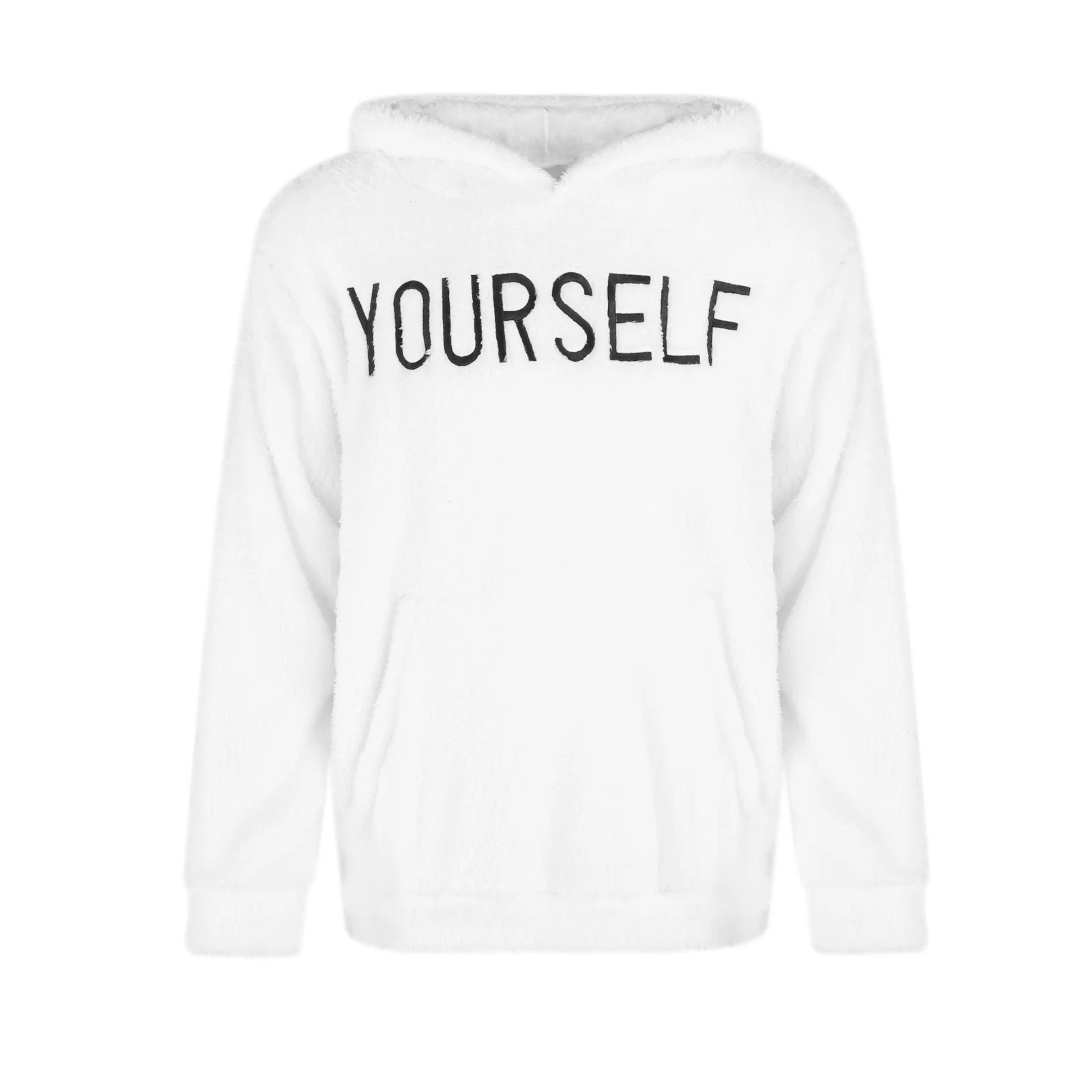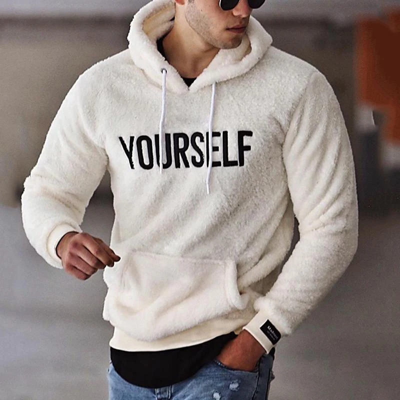 Мужская толстовка из пушистого флиса, повседневный зимний теплый пуловер с капюшоном с буквенным принтом и карманом-кенгуру
