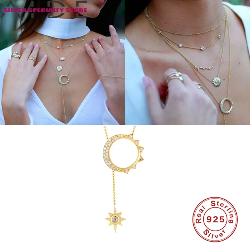 Женское Ожерелье из стерлингового серебра 925 пробы с бриллиантами и луной, ювелирное изделие 2020 пробы