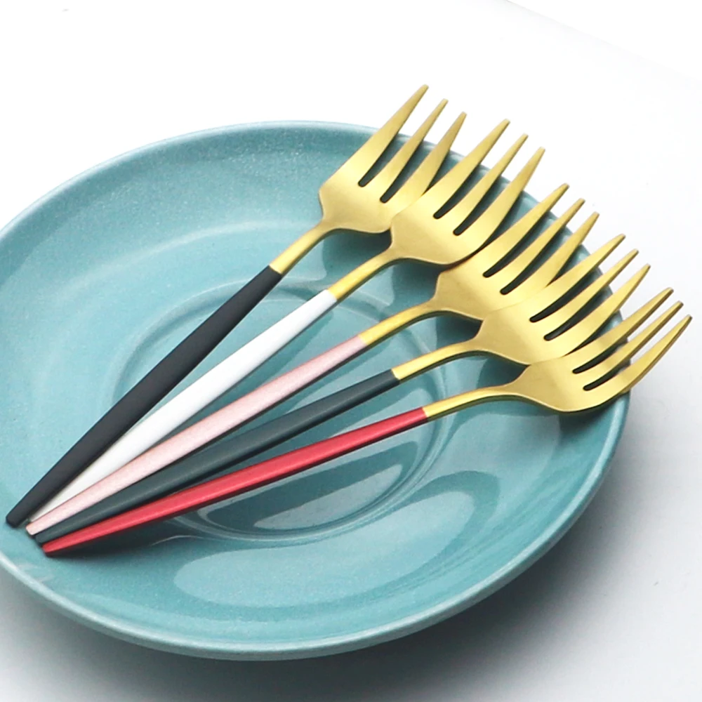 4 шт.компл. матовый вилки для торта красочные белые пластиковые столовые приборы для Десертная Вилка для фруктового салата Нержавеющаясталь столовые приборы кухонные принадлежности