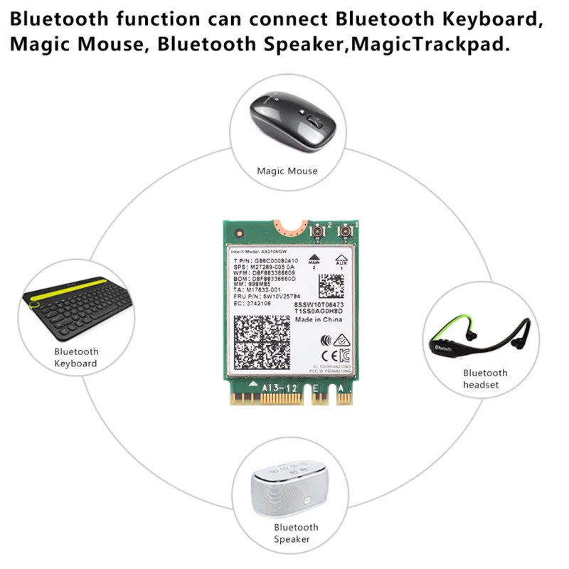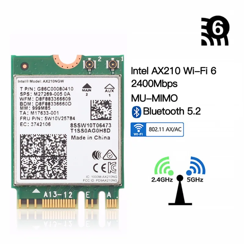 Wi-Fi 6E AX210, 3000 Мбитс, Bluetooth 5,2, 2,45 ГГц