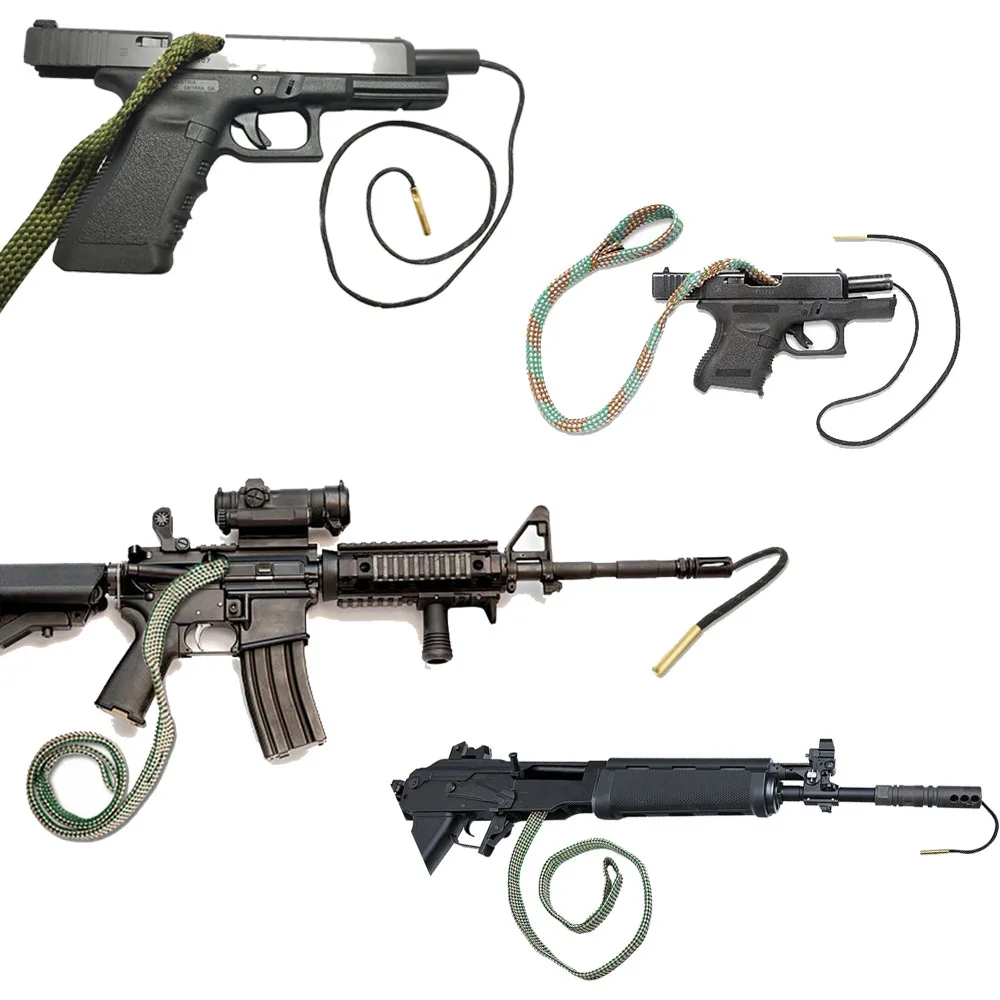Набор для очистки ружья для аксессуаров для быстрой очистки отверстий-латунный Утяжеленный проскальзывающий шнур легко проскальзывает вниз по стволу, просто захватывает и Тянет Шнур через ствол-один сквозной делает все это. Нет открытого металла для повреждения прицела или короны, и сборка не требуется. Моющиеся и многоразовые сотни раз.