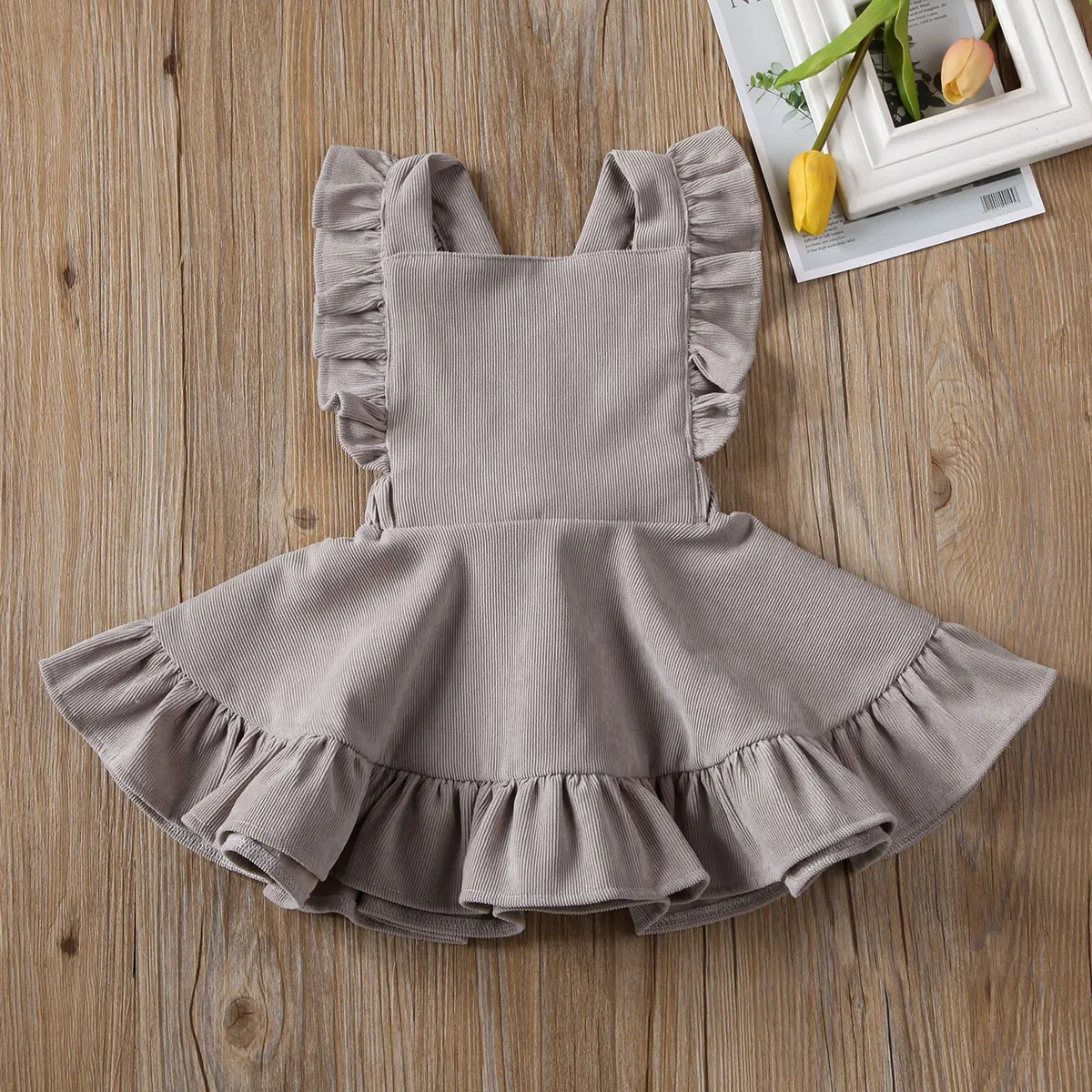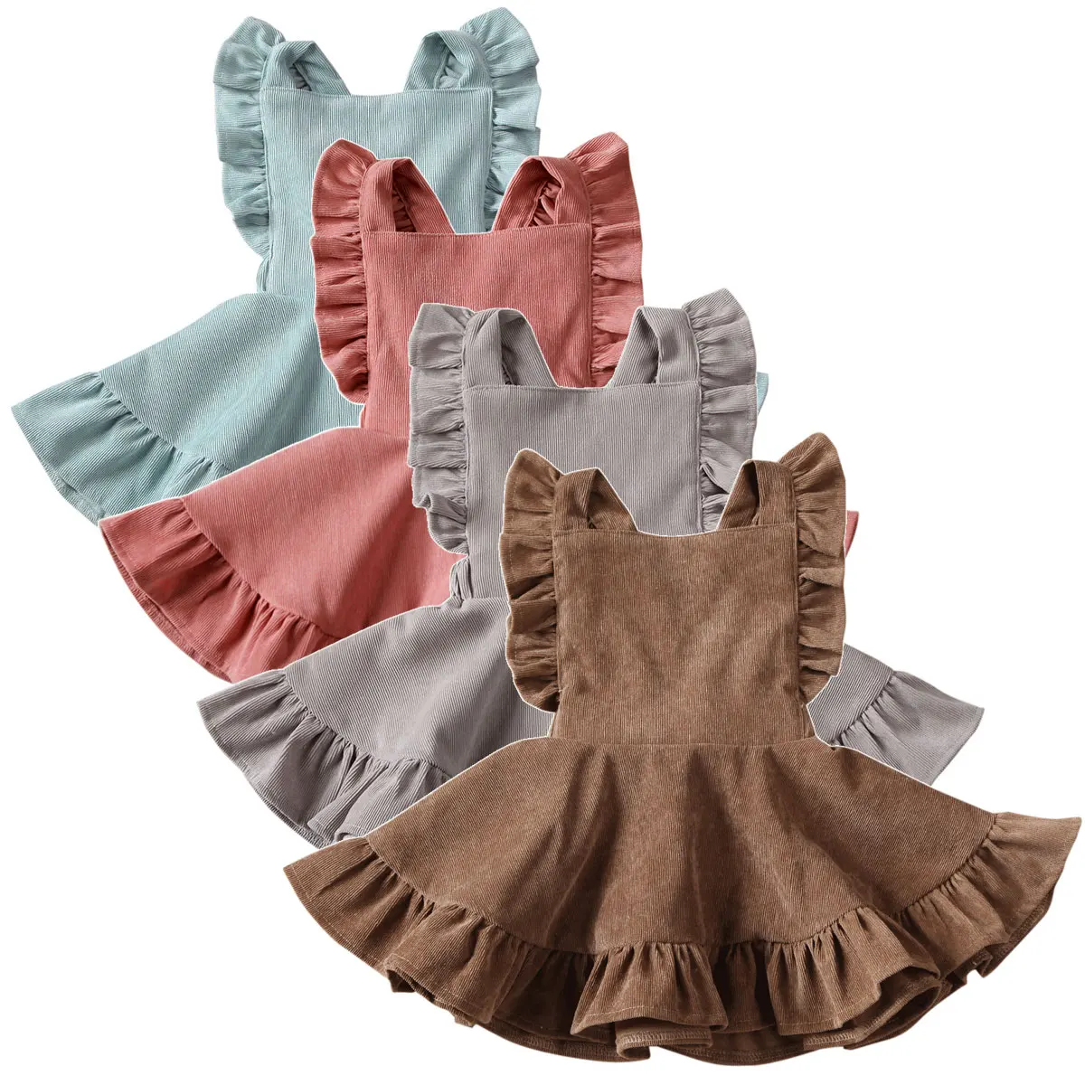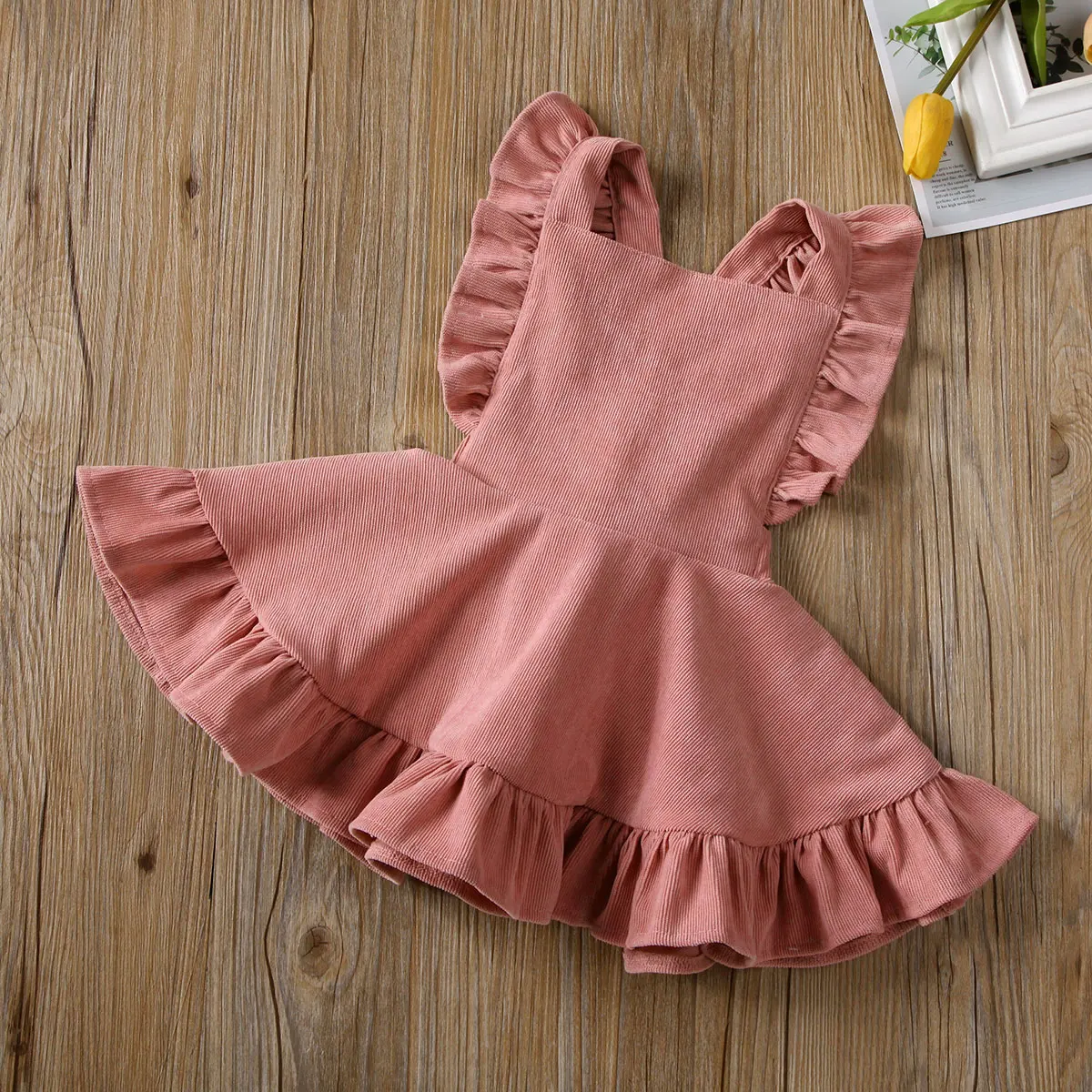 Летние платья для маленьких девочек, для детей, для маленьких девочек вельветовое платье с оборками, без рукавов, до колена, однотонные, с Длина бантом Открытое платье без рукавов От 6 месяцев до 5 лет