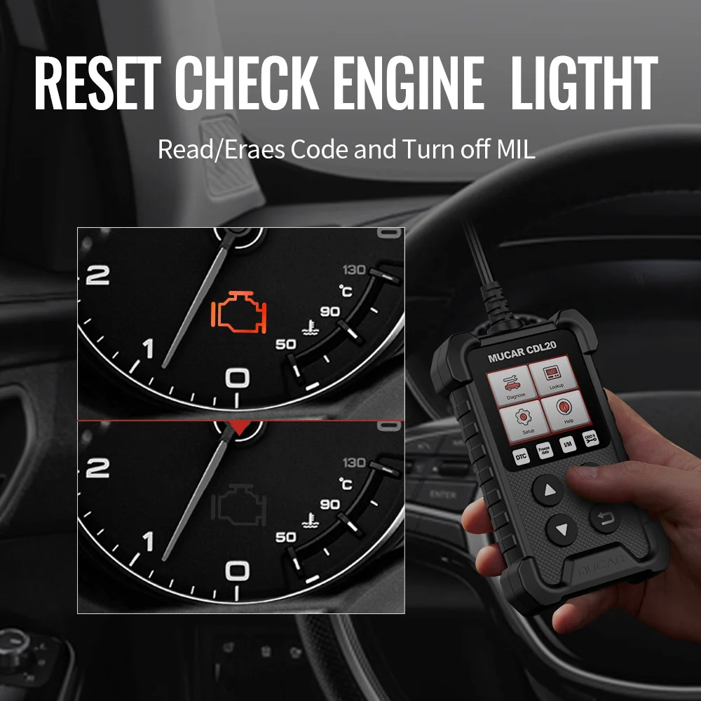 MUCAR CDL20 позволяет легко очистить сигнальный светильник двигателя после завершения полной диагностики obd2. Основной целью этого инструмента является:*-Сканирование систем двигателя;*-Расскажите о природе проблемы;*-Укажите точную причину, почему включен контрольный светильник двигателя;*-Помощь в обнаружении любых возможных проблем;*-Избегайте чрезмерных затрат на ненужные ремонтные работы.** Предупреждающий светильник не выключается до тех пор, пока вы не решите проблему.