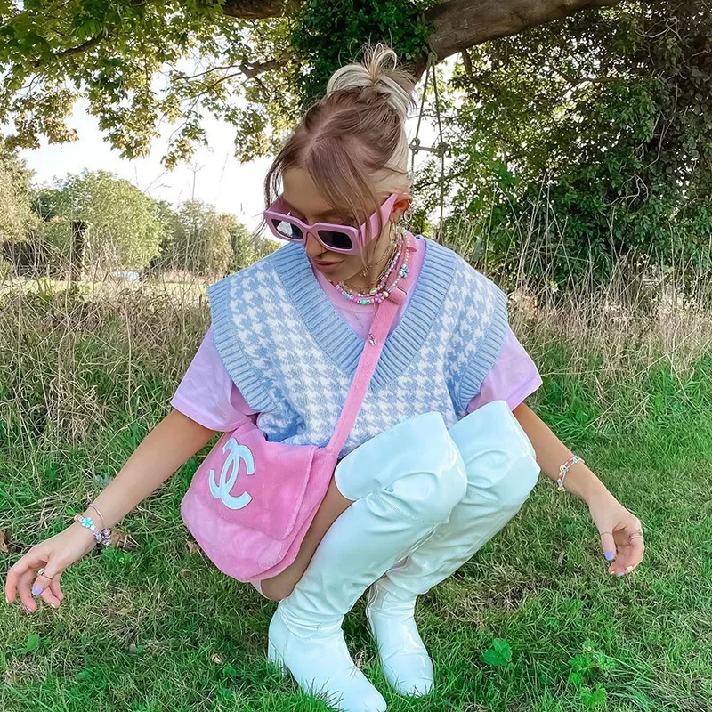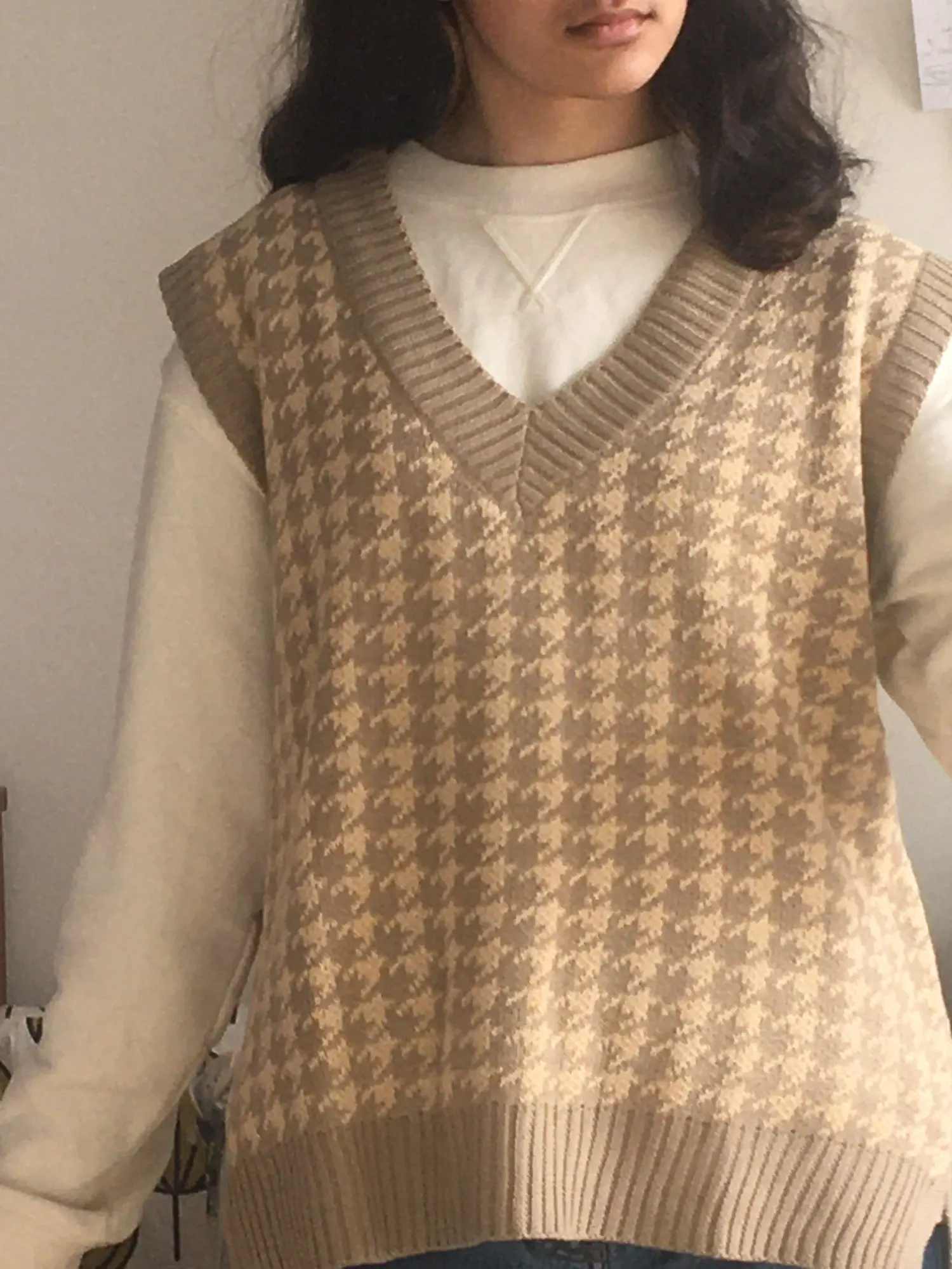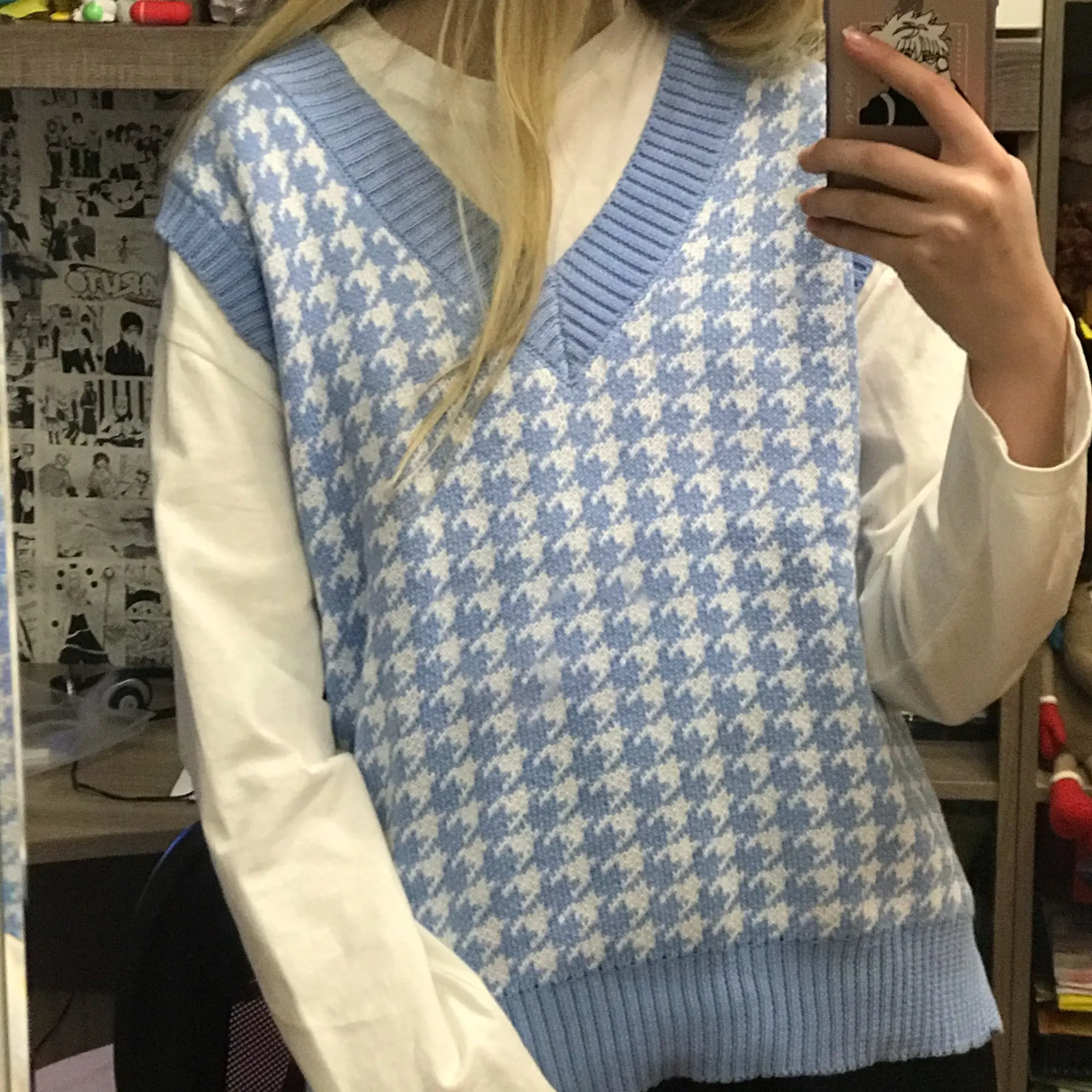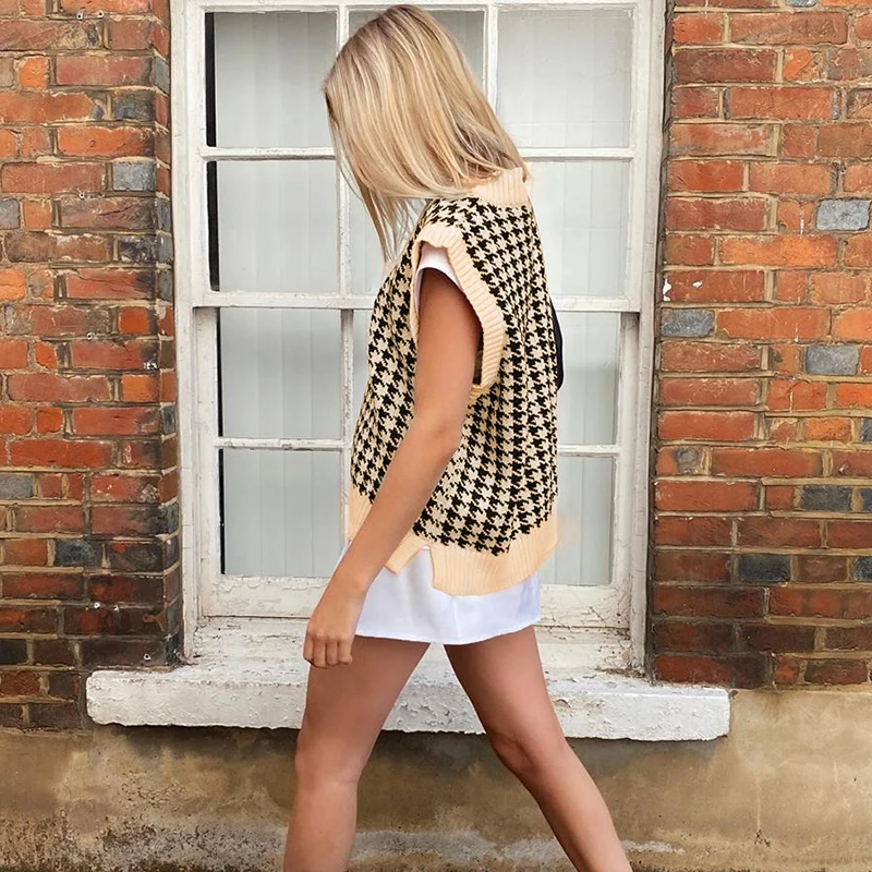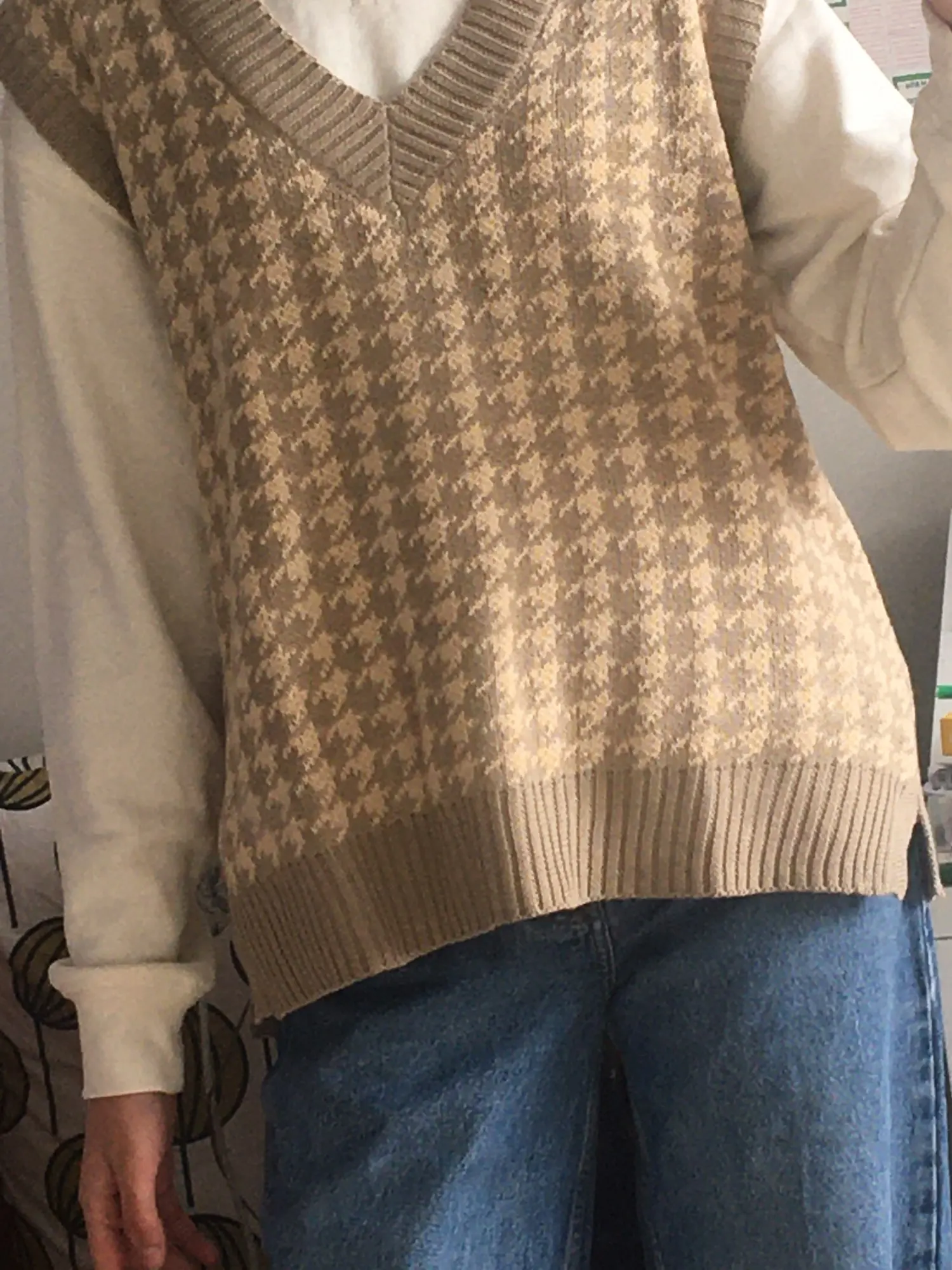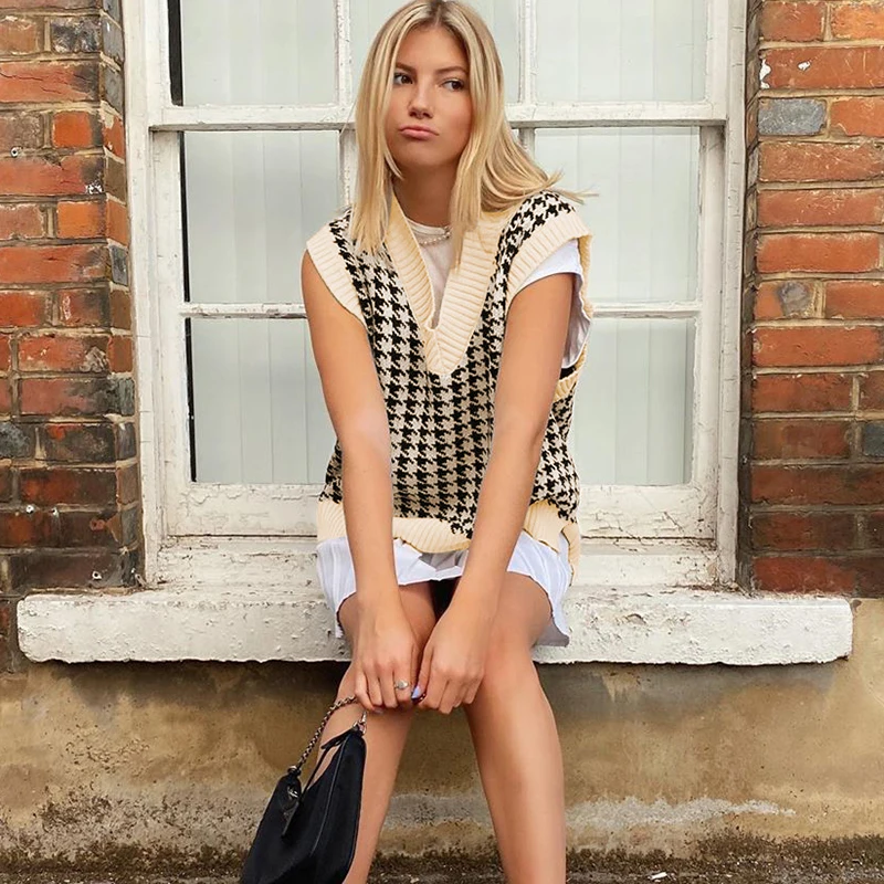 Вязаный свитер-безрукавка оверсайз ALLUKASA в стиле гусиная лапка, женский джемпер в английском стиле, Y2K, повседневный свободный Трикотажный жилет с V-образным вырезом в стиле 90-х на осень