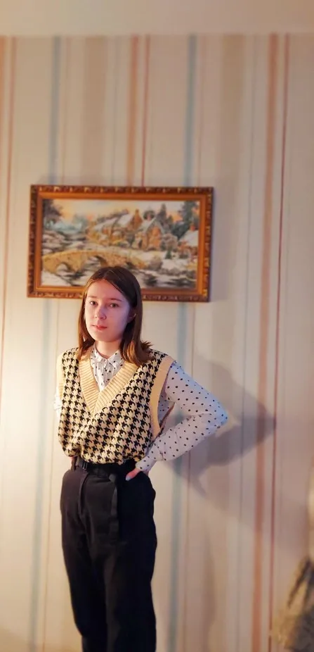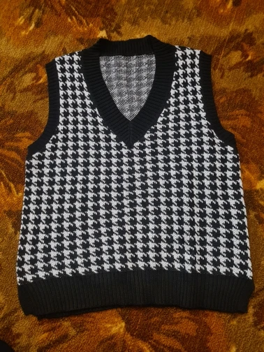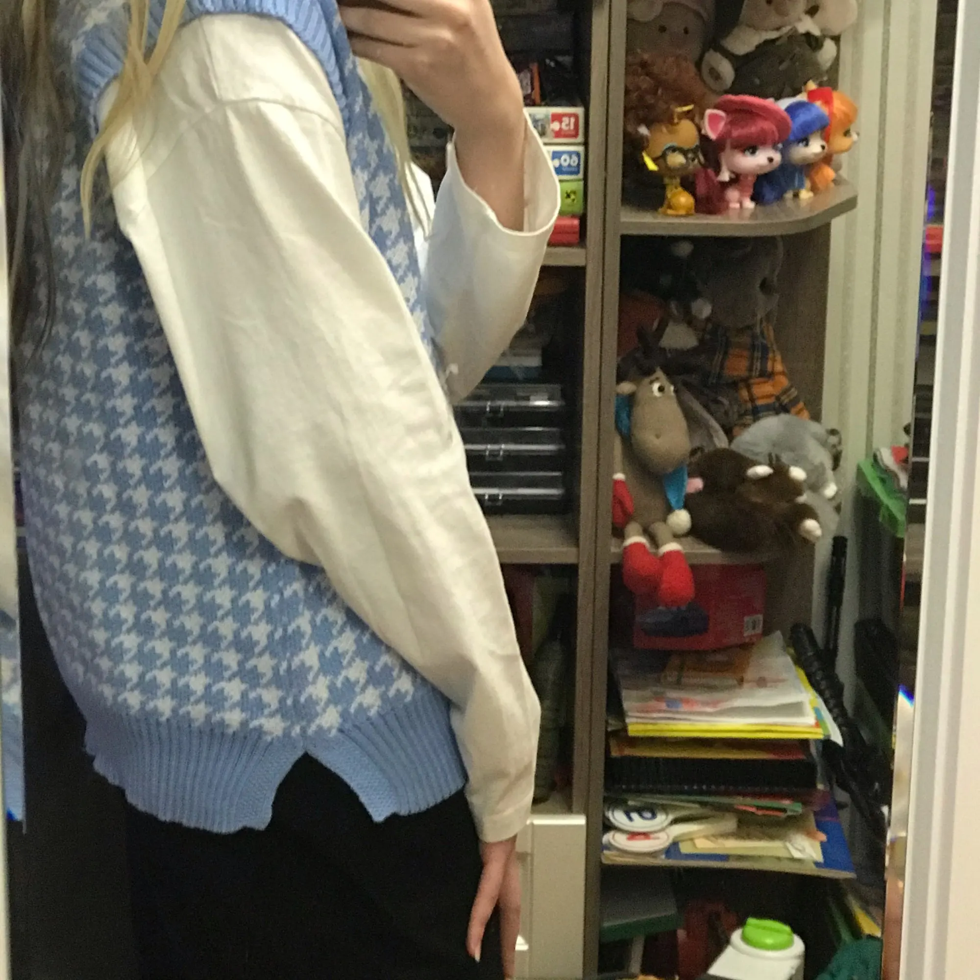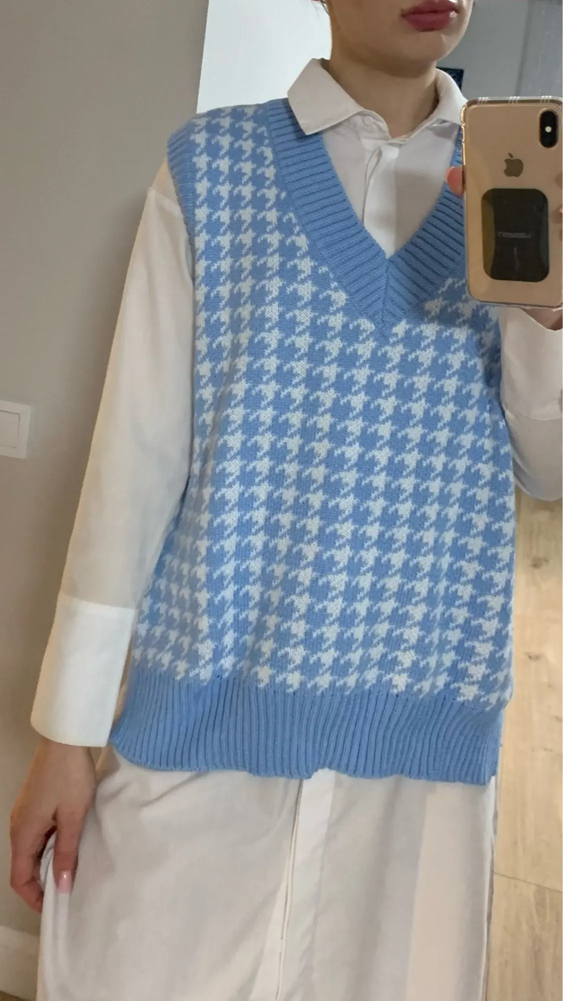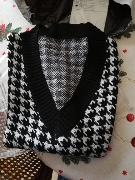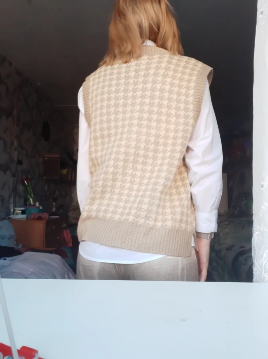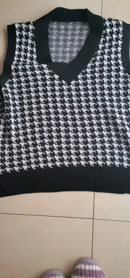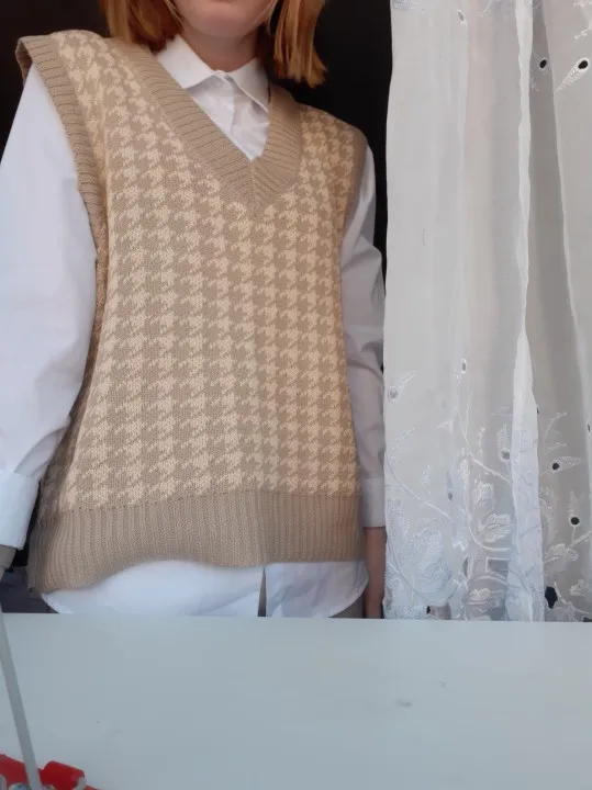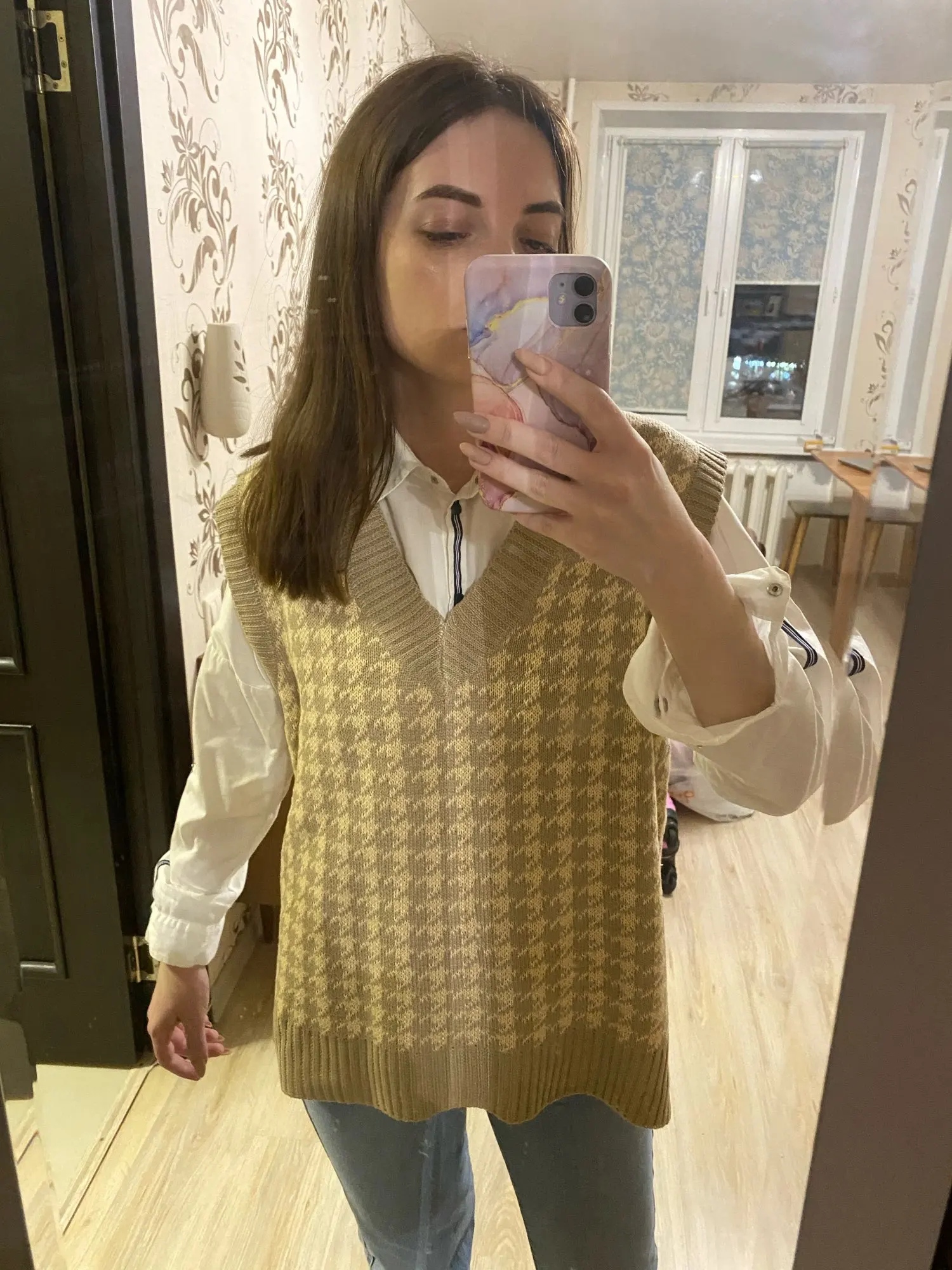 всем привет дорогие друзья добро пожаловать на обзор на Вязаный свитер ALLUKASA в стиле «гусиная лапка», женский жилет оверсайз Y2K в английском стиле, джемперы с V-образным вырезом, повседневная свободная трикотажная одежда 90-х, осень 1. приехала за 11 дней норм так 2. на рост 163-165 (я не помню) заказала размер s ну вроде подошло 3. ткань просто ahuet' какая приятная, мне это прям понрав, этикетки не было=> сказать какой материал не могу, но в характеристиках написано акрил 4. нитки нигде не торчат 5. не мнется вообще 6. не толстая и не тонкая 7. стильно модно молодежно и вообще дрейн 8. я думала цвет будет чисто белым, но он немного молочный (немного!!!!!!!!) 9. с продавцом не общалась че было после стирки сказать не могу, ещё не стирала =(( в общем 12/10