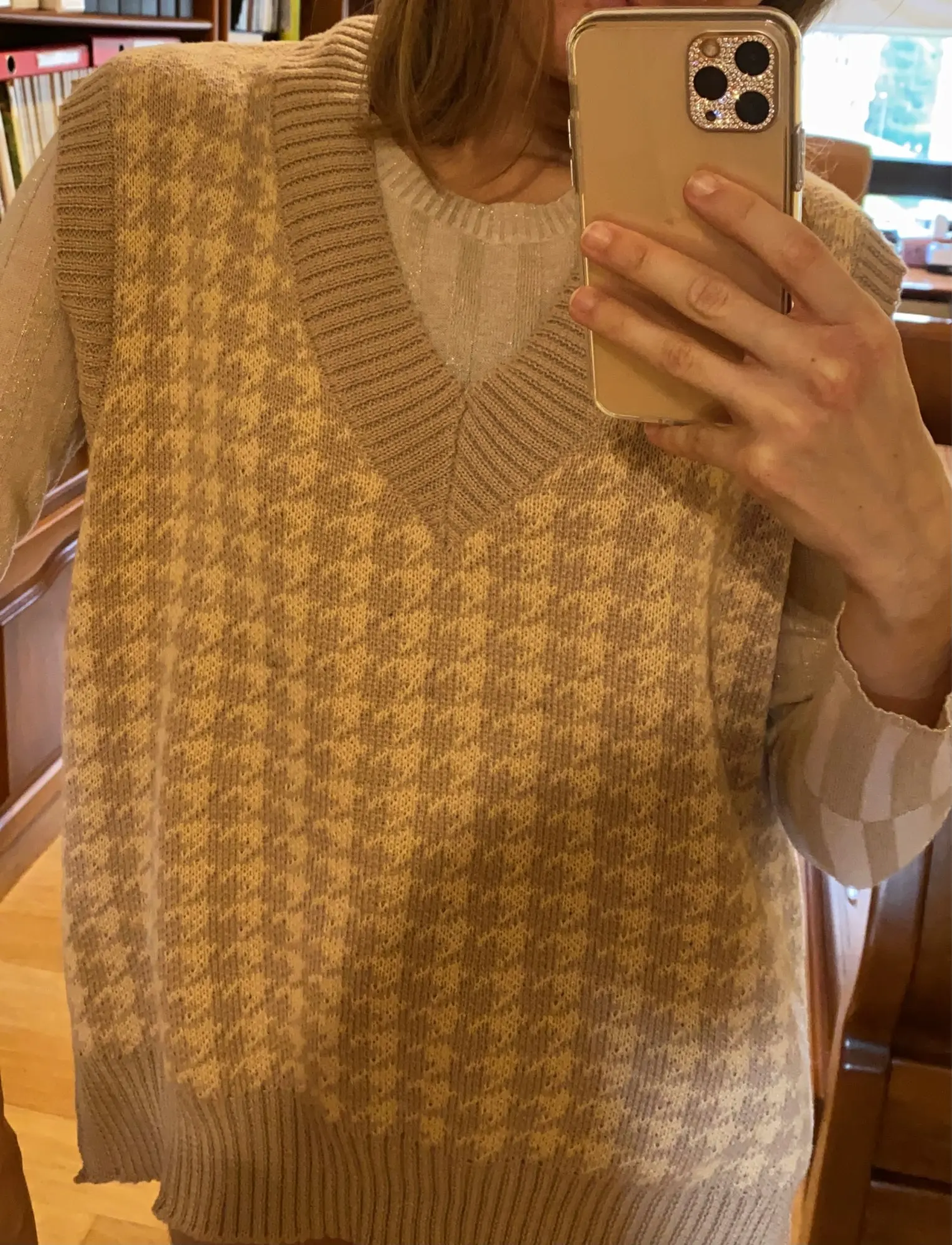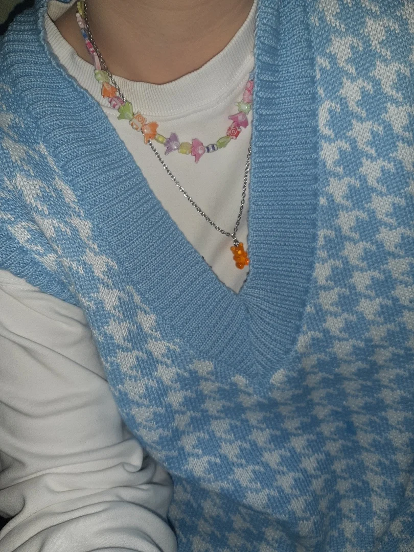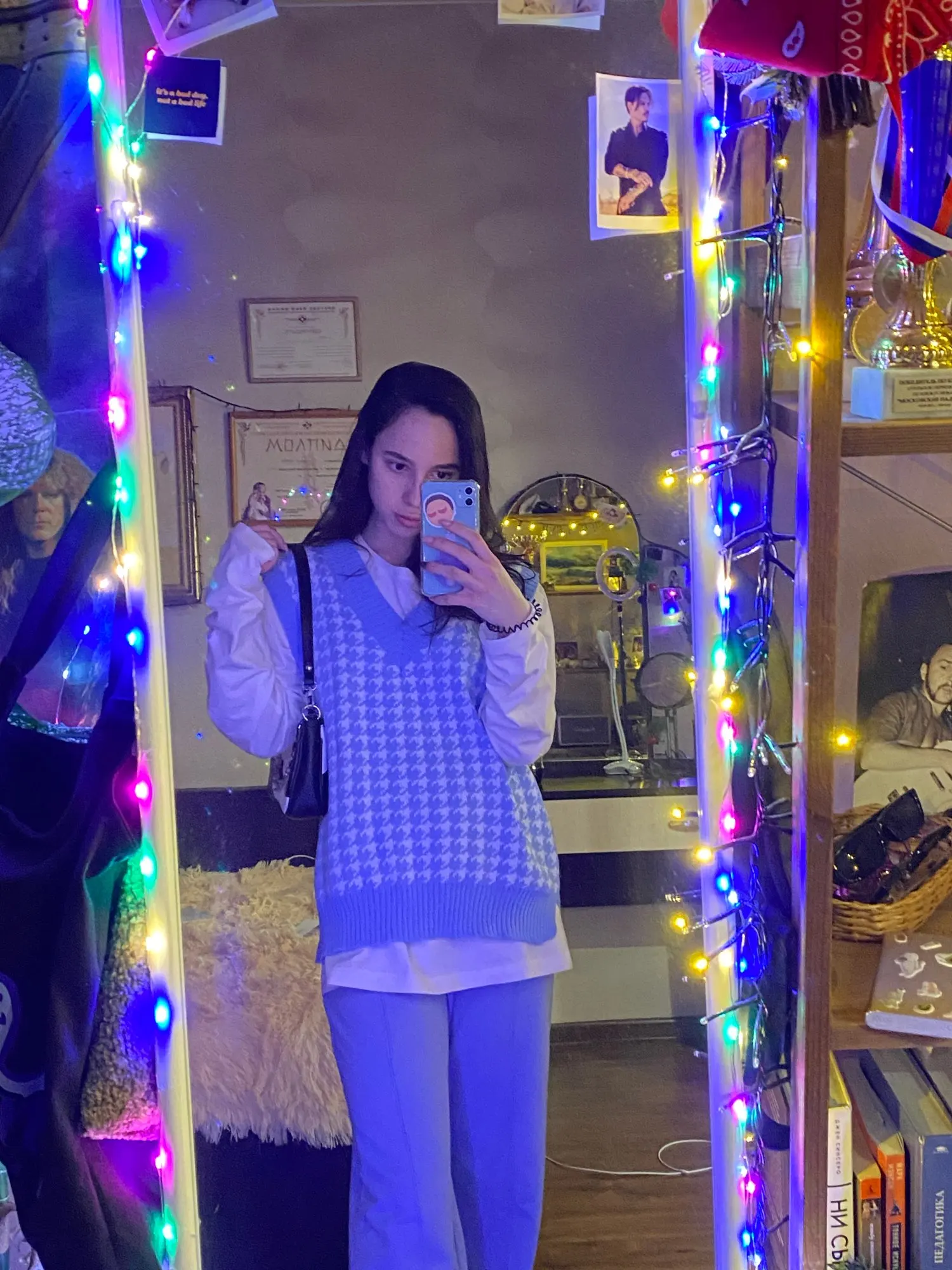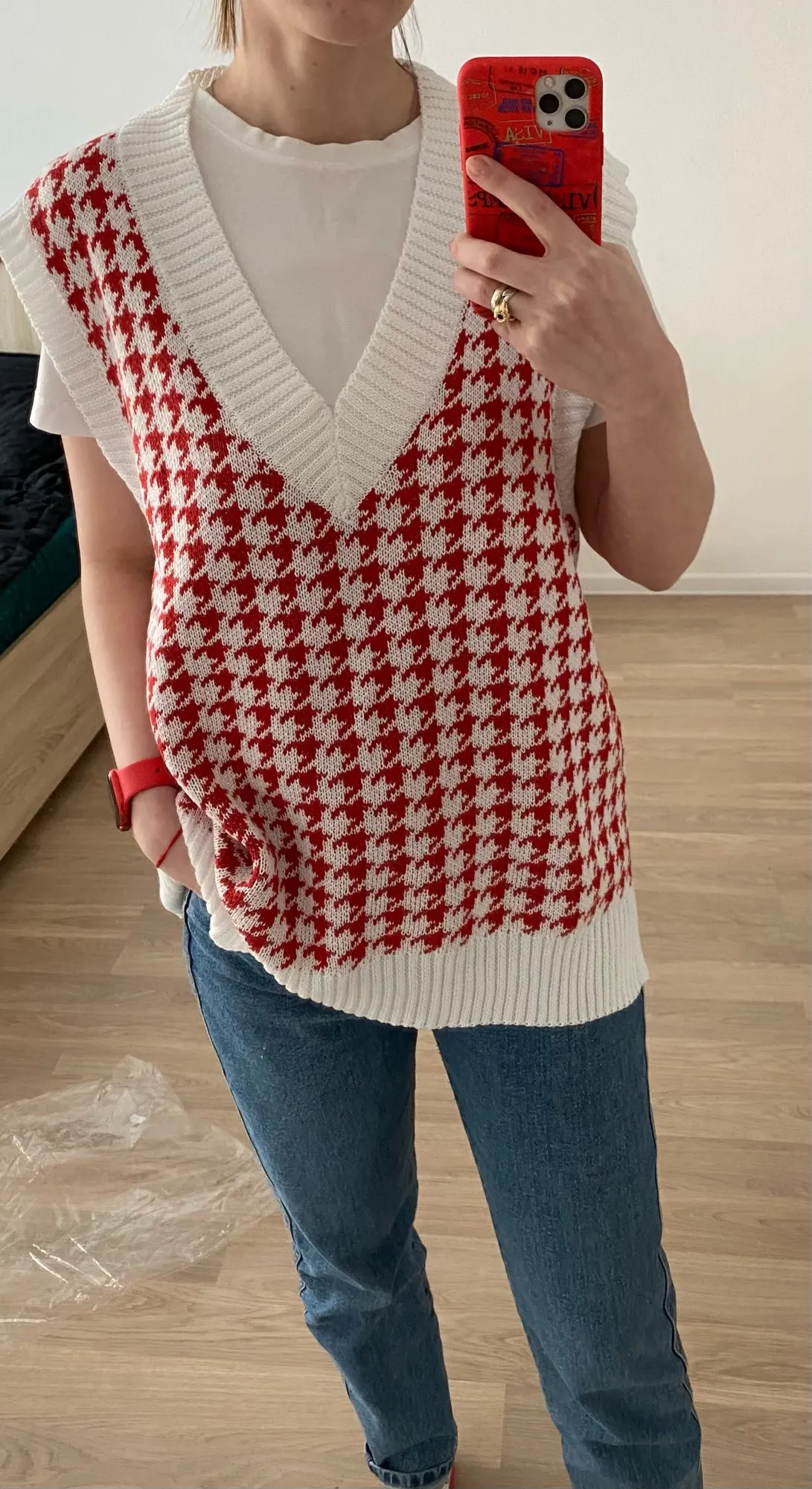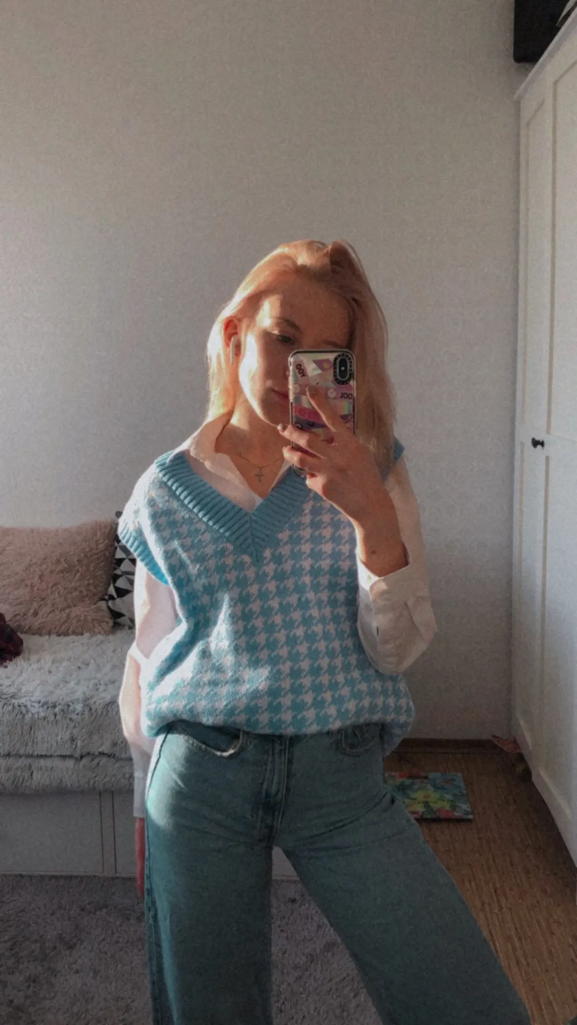 всем привет дорогие друзья добро пожаловать на обзор на Вязаный свитер ALLUKASA в стиле «гусиная лапка», женский жилет оверсайз Y2K в английском стиле, джемперы с V-образным вырезом, повседневная свободная трикотажная одежда 90-х, осень 1. приехала за 11 дней норм так 2. на рост 163-165 (я не помню) заказала размер s ну вроде подошло 3. ткань просто ahuet' какая приятная, мне это прям понрав, этикетки не было=> сказать какой материал не могу, но в характеристиках написано акрил 4. нитки нигде не торчат 5. не мнется вообще 6. не толстая и не тонкая 7. стильно модно молодежно и вообще дрейн 8. я думала цвет будет чисто белым, но он немного молочный (немного!!!!!!!!) 9. с продавцом не общалась че было после стирки сказать не могу, ещё не стирала =(( в общем 12/10