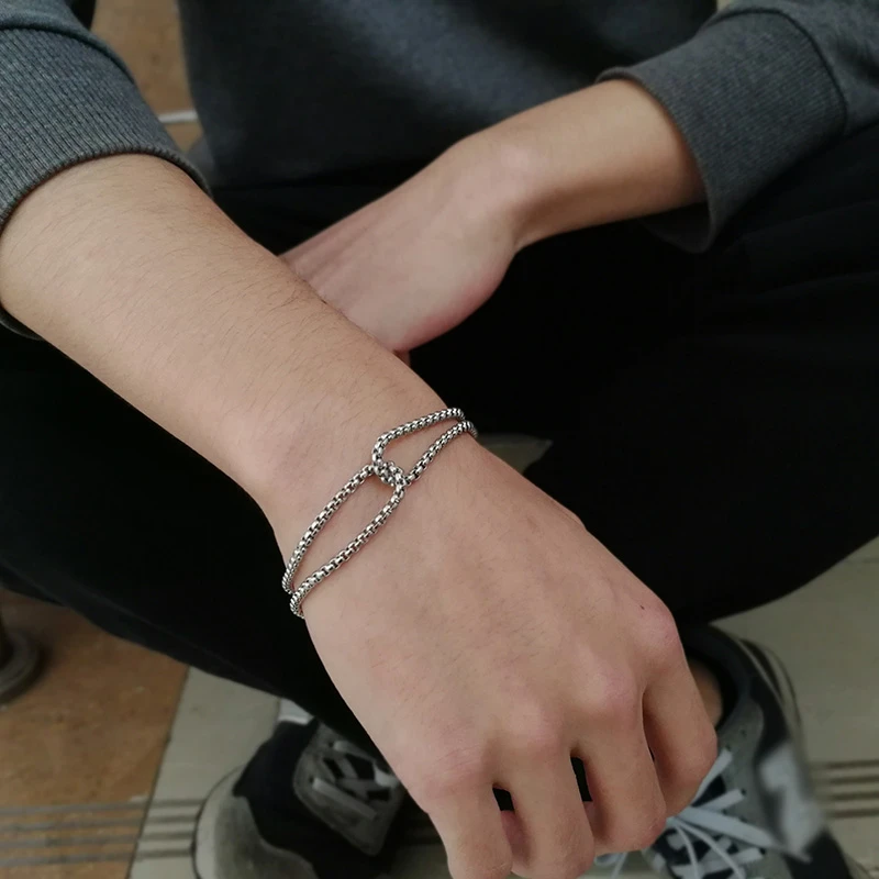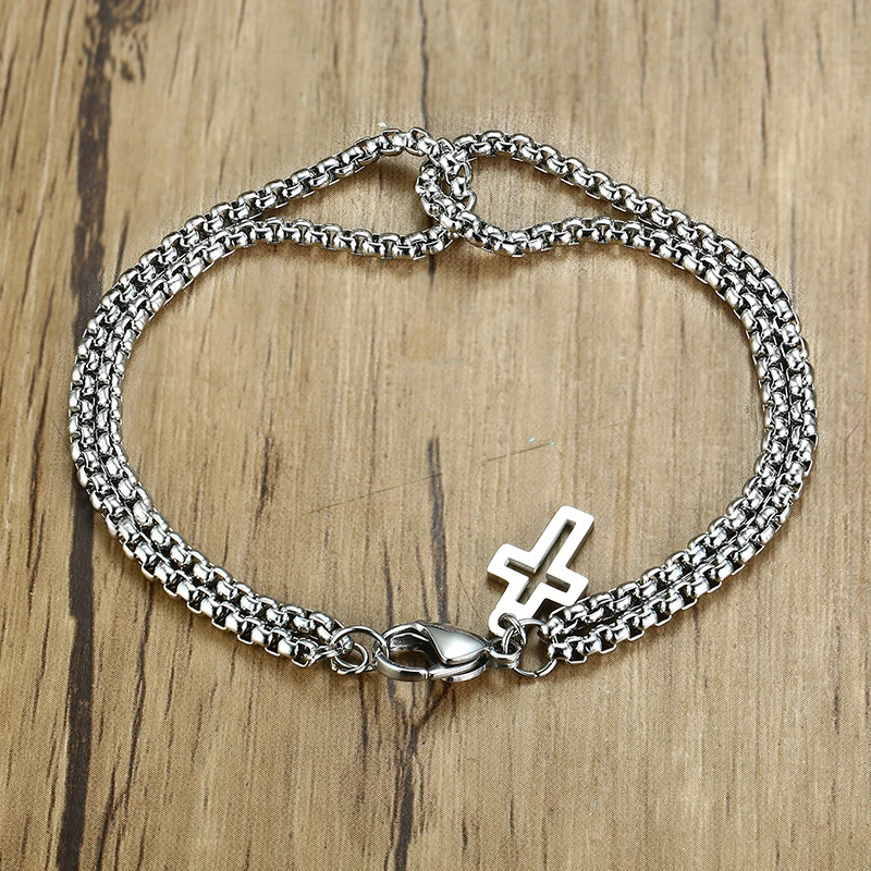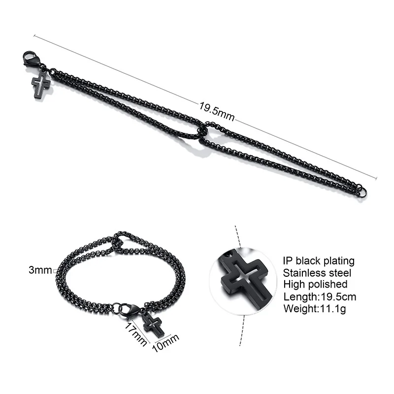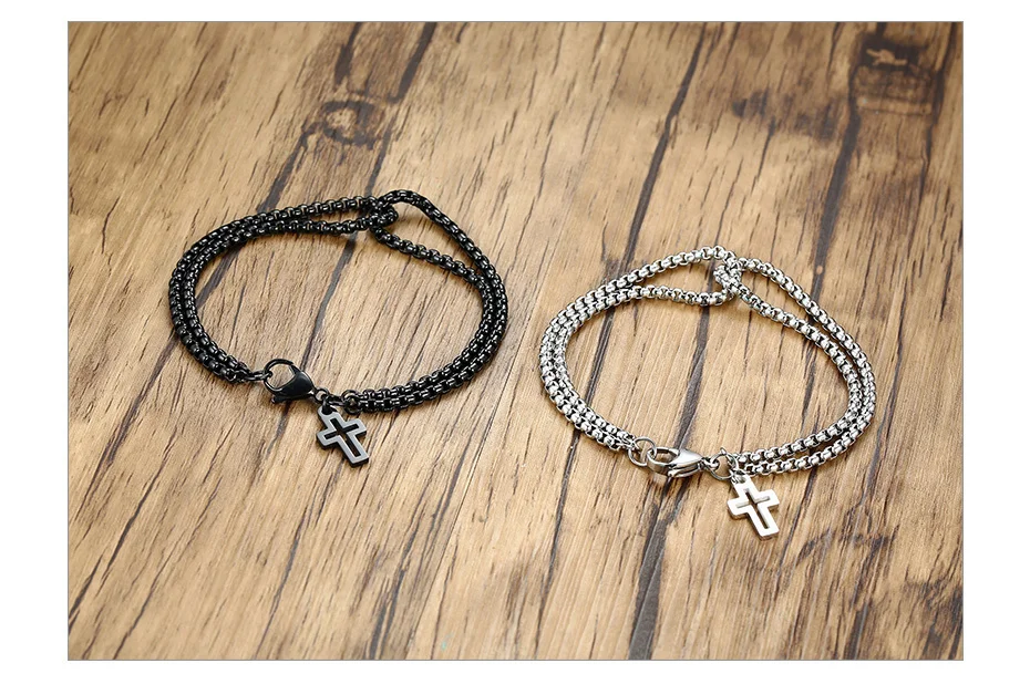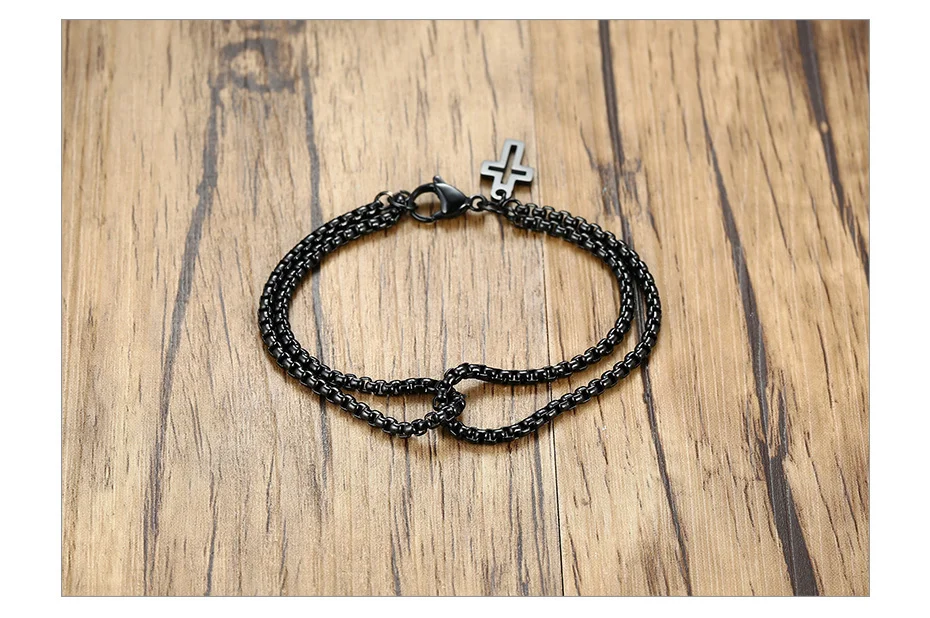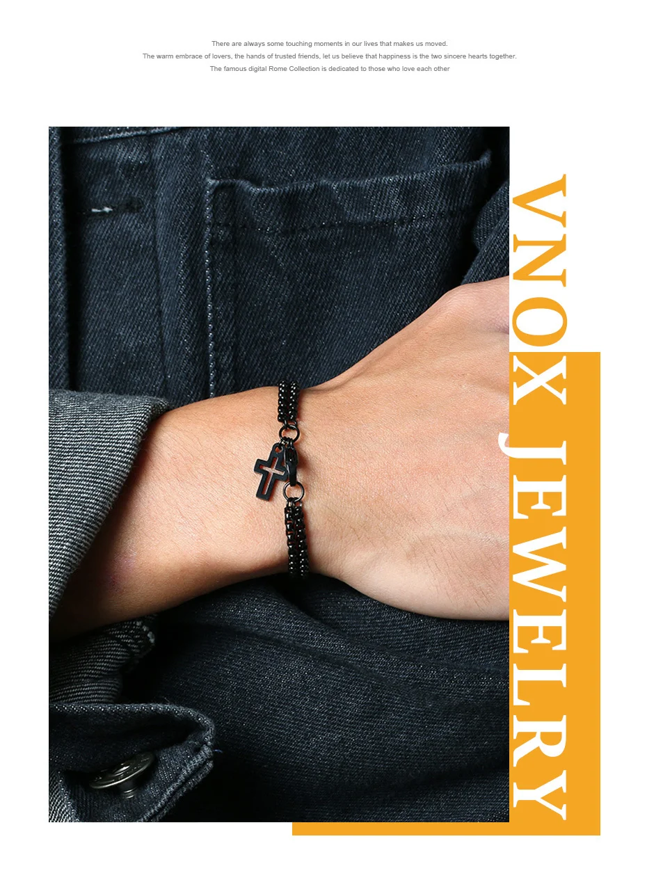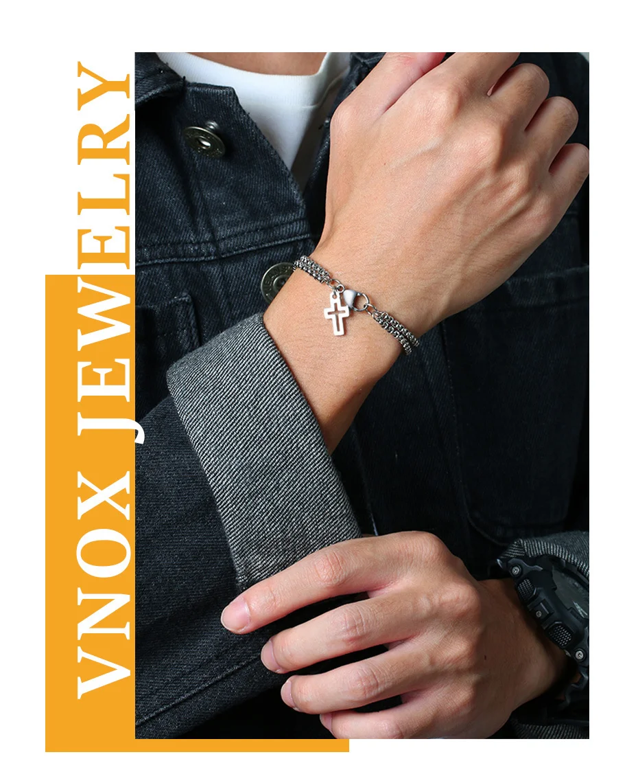 Мужской многослойный браслет Vnox, простые браслеты-цепочки Rolo 3 мм, винтажный Повседневный подарок в круглой коробке с подвеской-крестом
