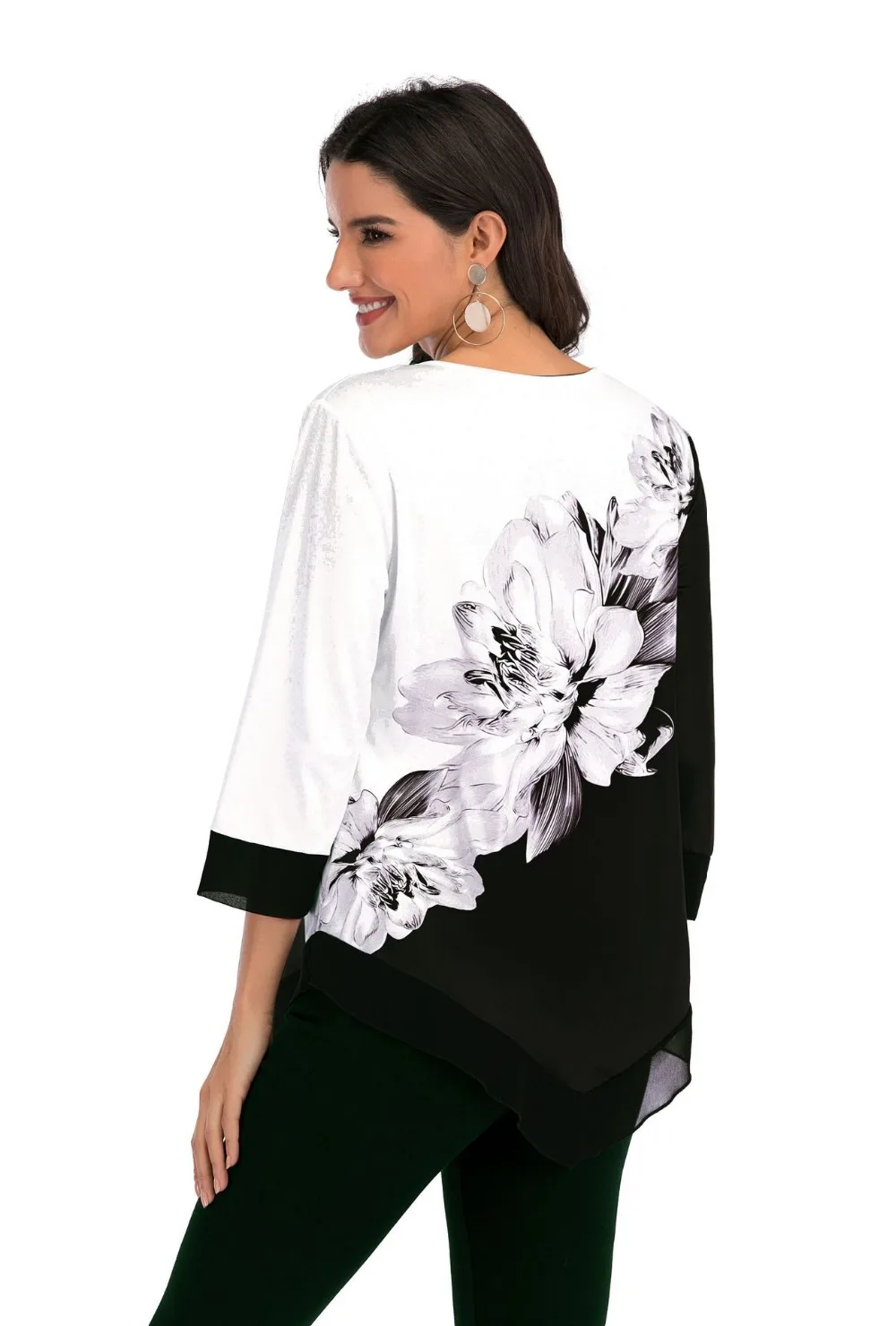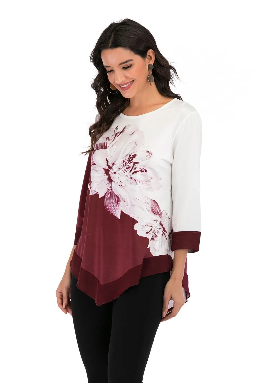 Женские рубашки модная одежда 34 с длинными рукавами; Сезон весна-лето; Блузка с цветочным принтом с круглым О-образным вырезом над Размеры d рубашка 5XL плюс Размеры Свободные повседневные топы
