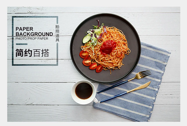 Материал: ПВХ-бумага На поверхности имеется слой защитной пленки из ПВХ, которая может быть водонепроницаемой и пыленепроницаемой, но нельзя замачивать в воде Фоновая бумага и эластичная марля для студийной фотосъемки подходит для еды, десертов, косметики, ювелирных изделий, нефрита, антикварных изделий, игрушек, подарков и т. д. Размер фоновой бумаги: 54x83 см