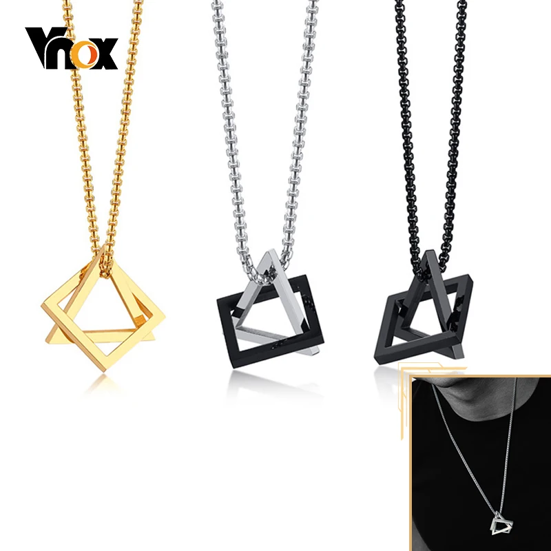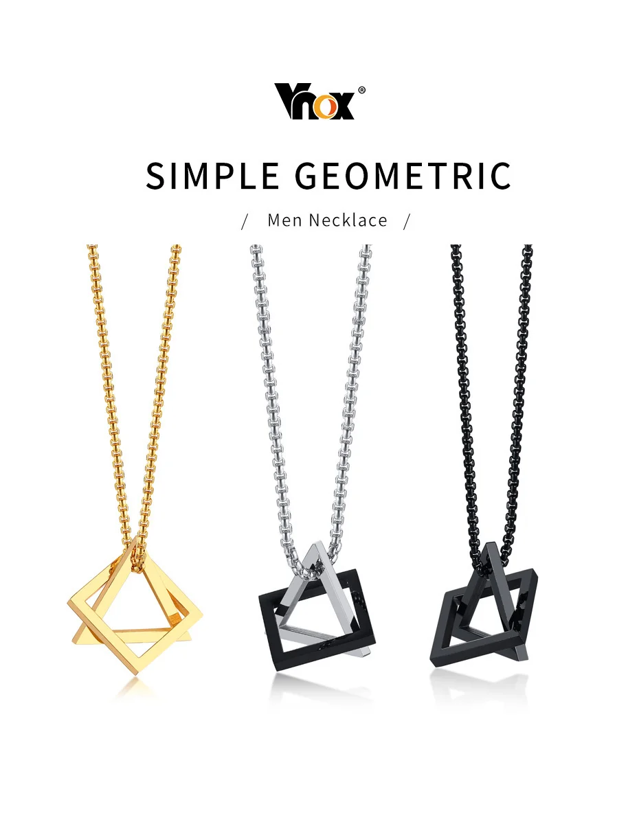 Мужские квадратные ожерелья с треугольными подвесками Vnox из нержавеющей стали с геометрическим узором