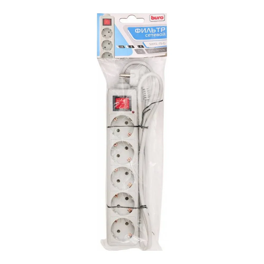 Сетевой фильтр Buro 500SL-1.5-G 1.5м (5 розеток) серый