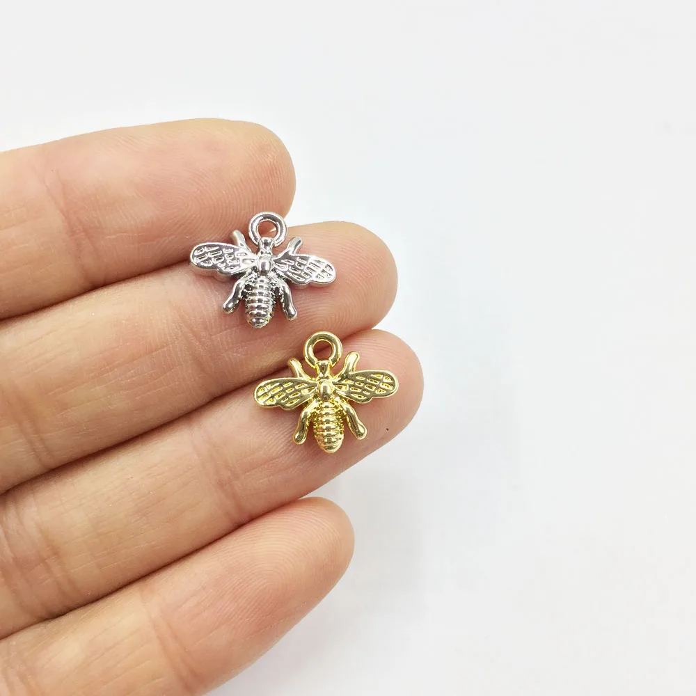 Eruifa 20 шт. 15*10 мм позолоченнаясеребряная пчела цинковый сплав Подвески ювелирные изделия DIY ожерелье браслет серьги 2 цвета