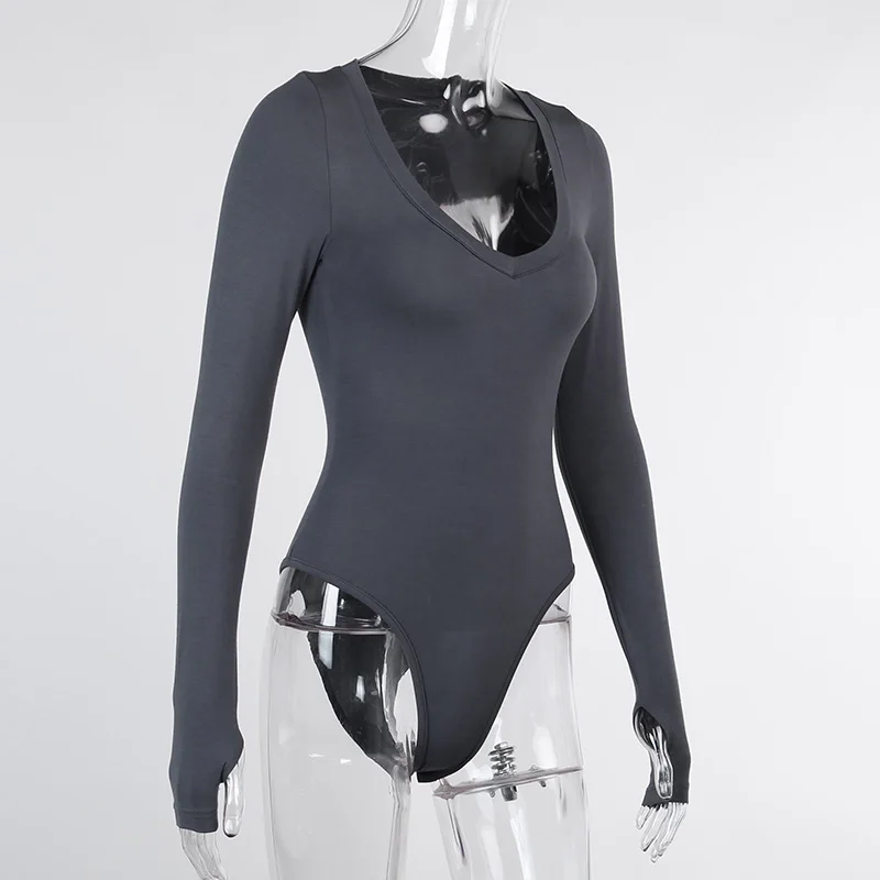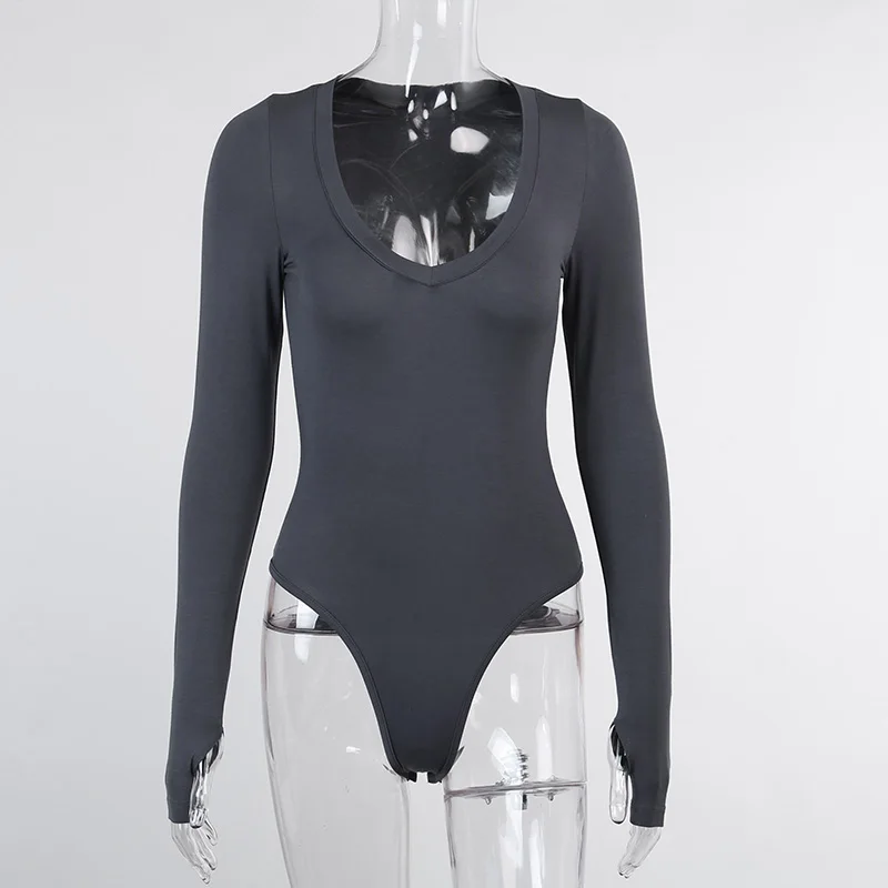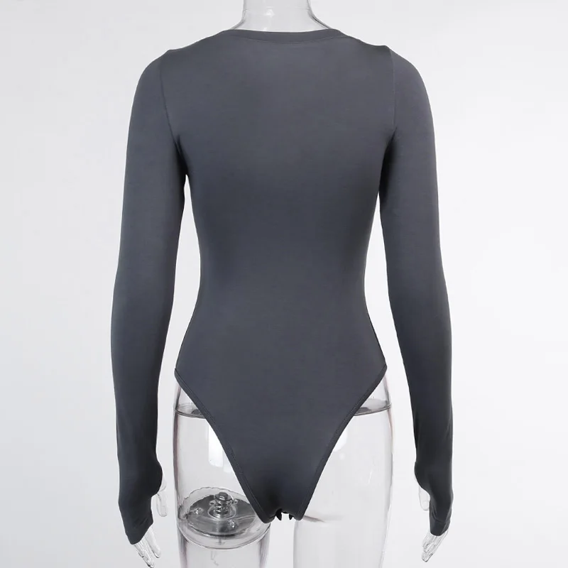 InstaHotСексуальное Женское боди с вырезами, облегающее однотонное черное Клубное платье, уличная одежда, комбинезоны с круглым вырезом, осень 2020, боди с длинным рукавом