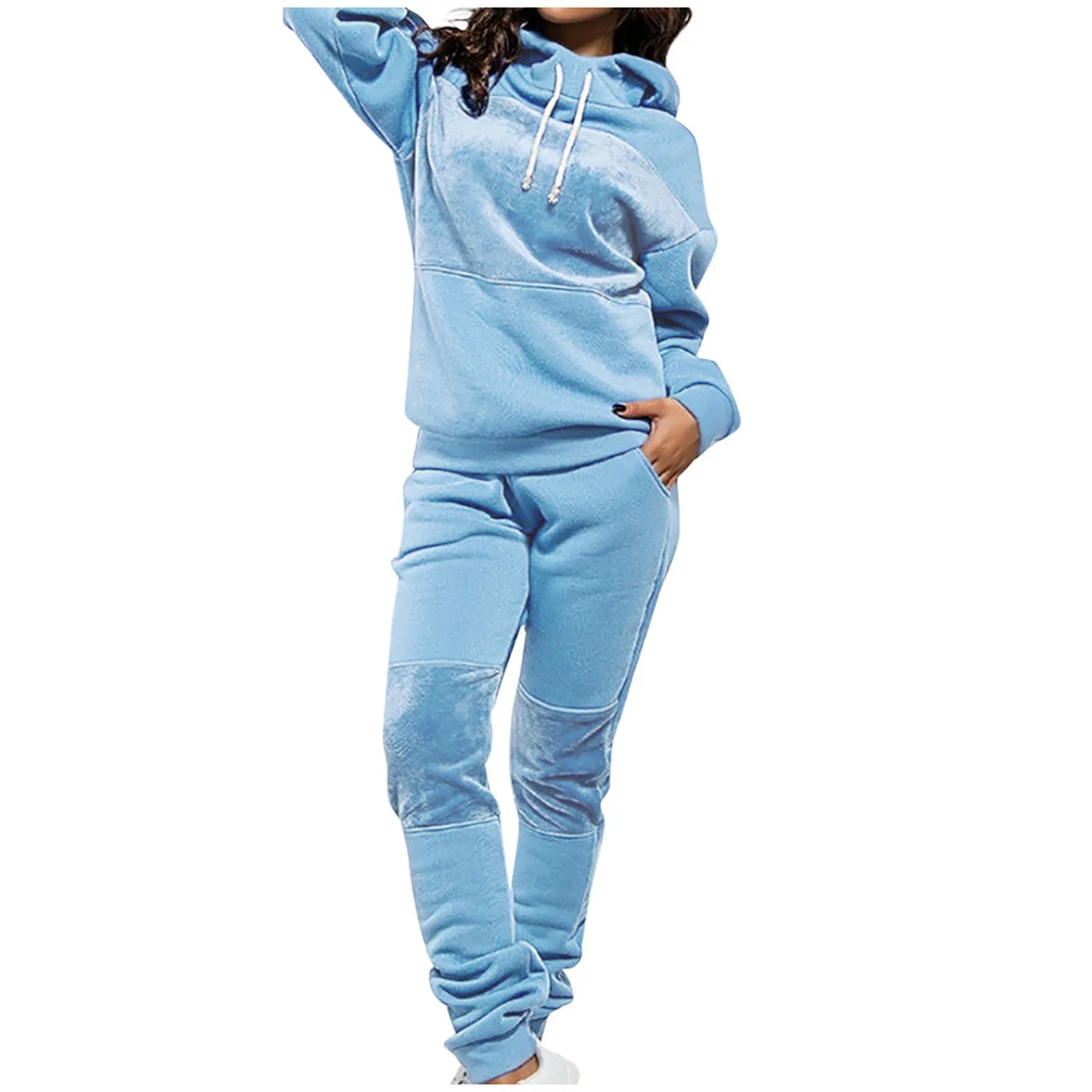 2020 европейский и американский Женский Повседневный Спортивный костюм осень зима теплый свободный толстовка с брюками Толстовка спортивный костюм