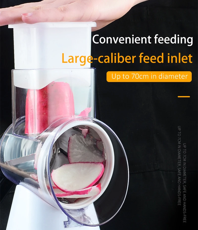 Инновационный дизайн барабана, резка овощей не повредит руки.