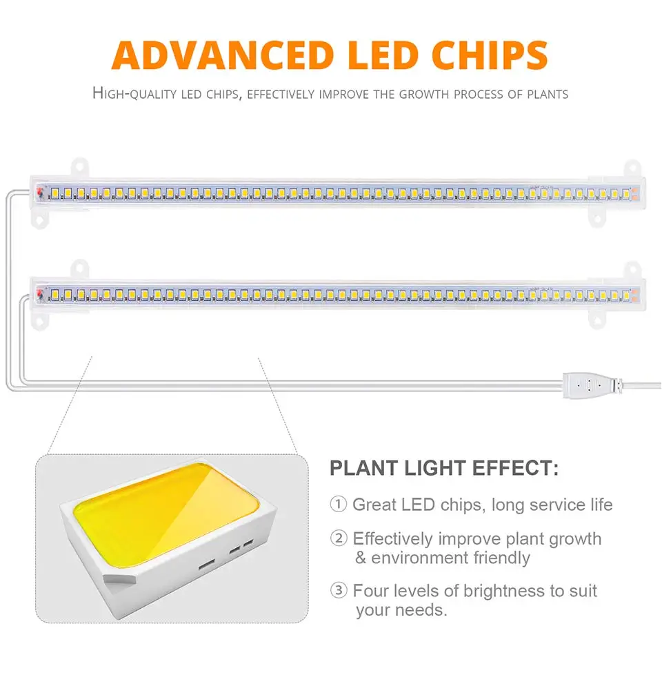 [4 уровня затемнения] 25%, 50%, 75%, 100% прочности. Две полосы 10 Вт и 48 Светодиодный светильник достаточно излучают, чтобы покрыть все этапы роста растений, не беспокоясь о выгорании растений Plug And Play-светильник для выращивания поставляется с винтами и двусторонней лентой для легкой установки. Компактный дизайн подходит для различных приспособлений и поверхностей. Шнур питания длиной 71 дюйм для удобства использования на стойках растений, теплицах, офисах, в помещении и многого другого.