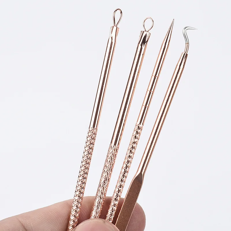 4 шт., удаление угрей, экстрактор розово-золотистый и черный горошек чистящее средство для удаления иглы комплект с блестками и черными пятнами средство для очищения пор инструмент