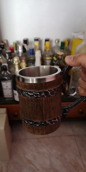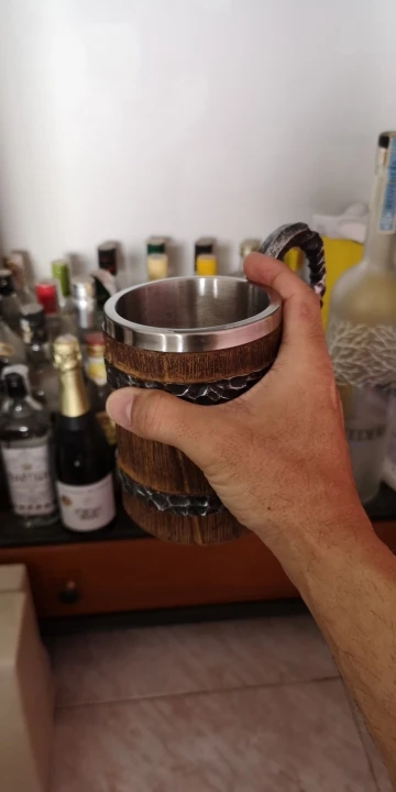 Пивная кружка в стиле викингов, деревянная пивная чашка с двойными стенками, подарок на Рождество, Имитация деревянной бочки, кружка с металлической изоляцией