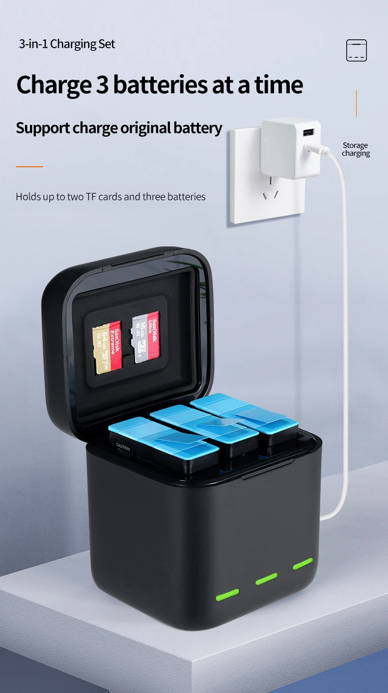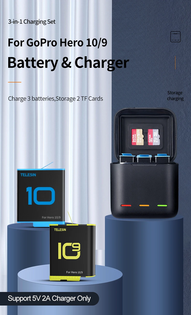 Футляр для зарядки аккумуляторов GoPro Hero 10 9, 1750 мАч, умные перезаряжаемые аккумуляторы, футляр для хранения TF-карты для Go Pro 10 9, аксессуары для камеры