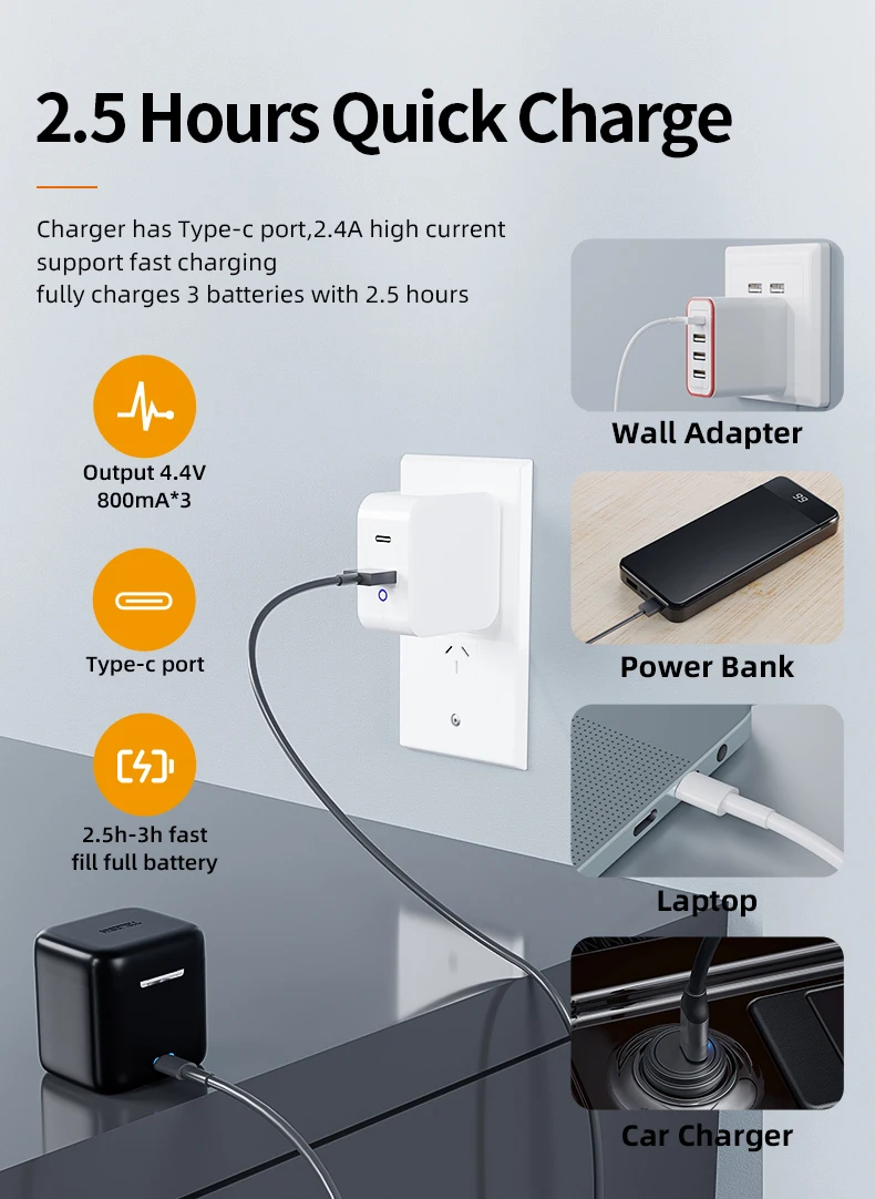 Это отлично. 3 аккумулятора и суперзарядный блок. Очень быстрая доставка в течение 7 дней и дома