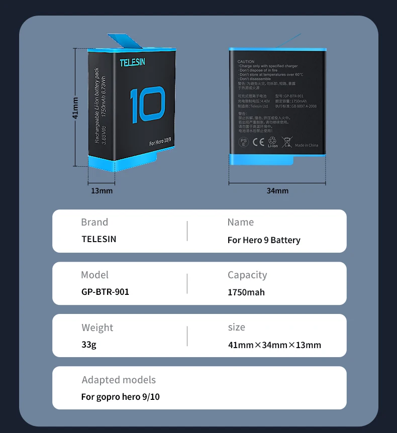 Entrega rápida, tamaño ideal para transporte y carga de baterías, las baterías de momento son compatibles con la hero 9 y falta ver su duracion