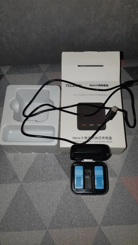 Доставка в Новую Зеландию занимает более 2 месяцев, открылась в службе регистрации и поставляется в другой упаковке. Коробка выглядит твердой, светодиодный свет работает, 3 батареи, прибыл с 27-28% зарядки, перезаряжен до 100%. Все три правильно обнаружены в GoPro. Оригинальная батарея также заряжается в коробке. Не тестировали реальную среду, как долго она прослужит, увидим в течение нескольких месяцев