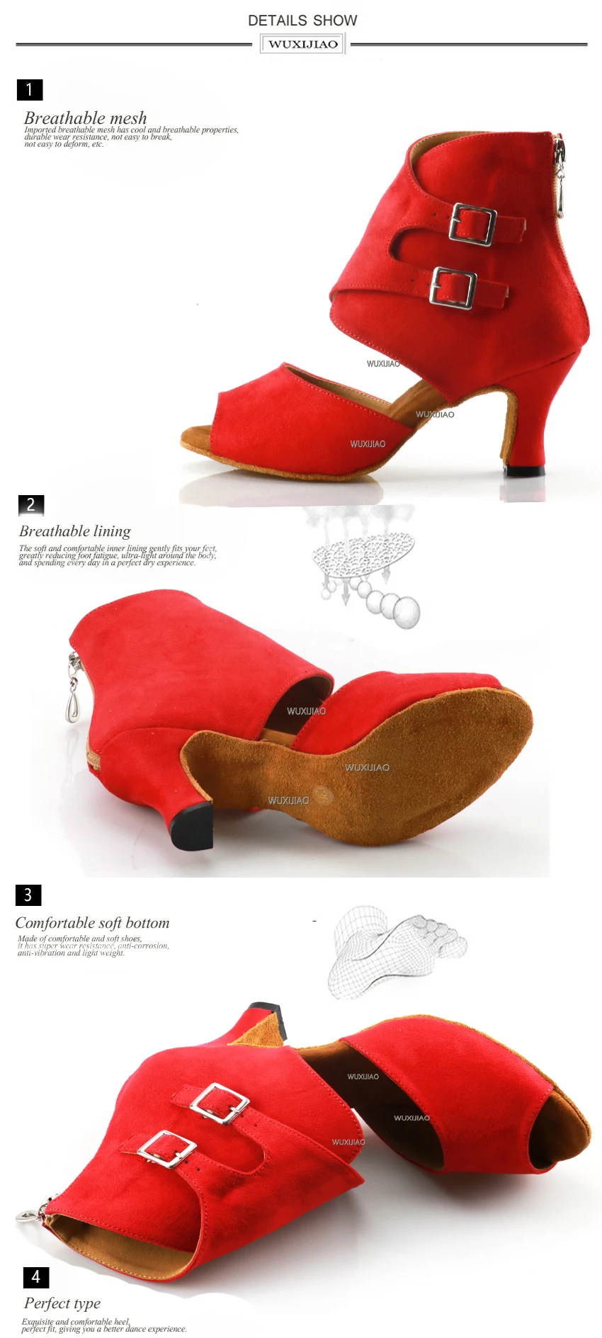 Блестящие туфли для латиноамериканских танцев WUXIJIAO, женские туф...