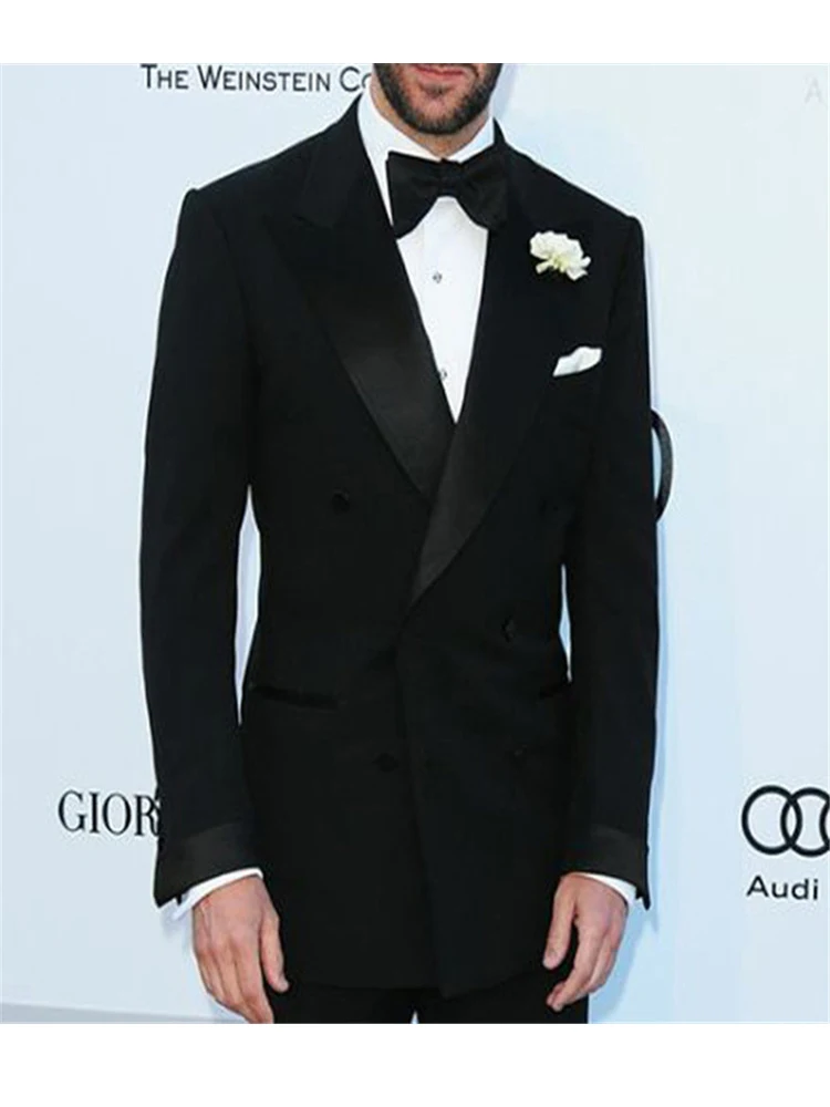 Мужские костюмы из двух предметов черного цвета для деловых встреч и вечеринок 2020 двубортный официальный индивидуальный пошив мужской костюм для жениха на свадьбу смокинг пиджак брюки