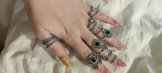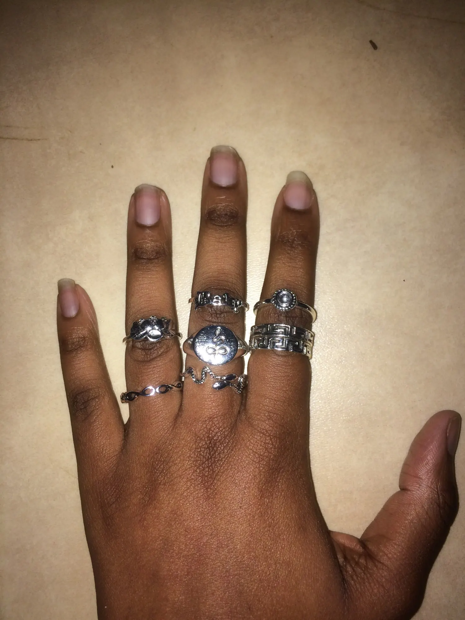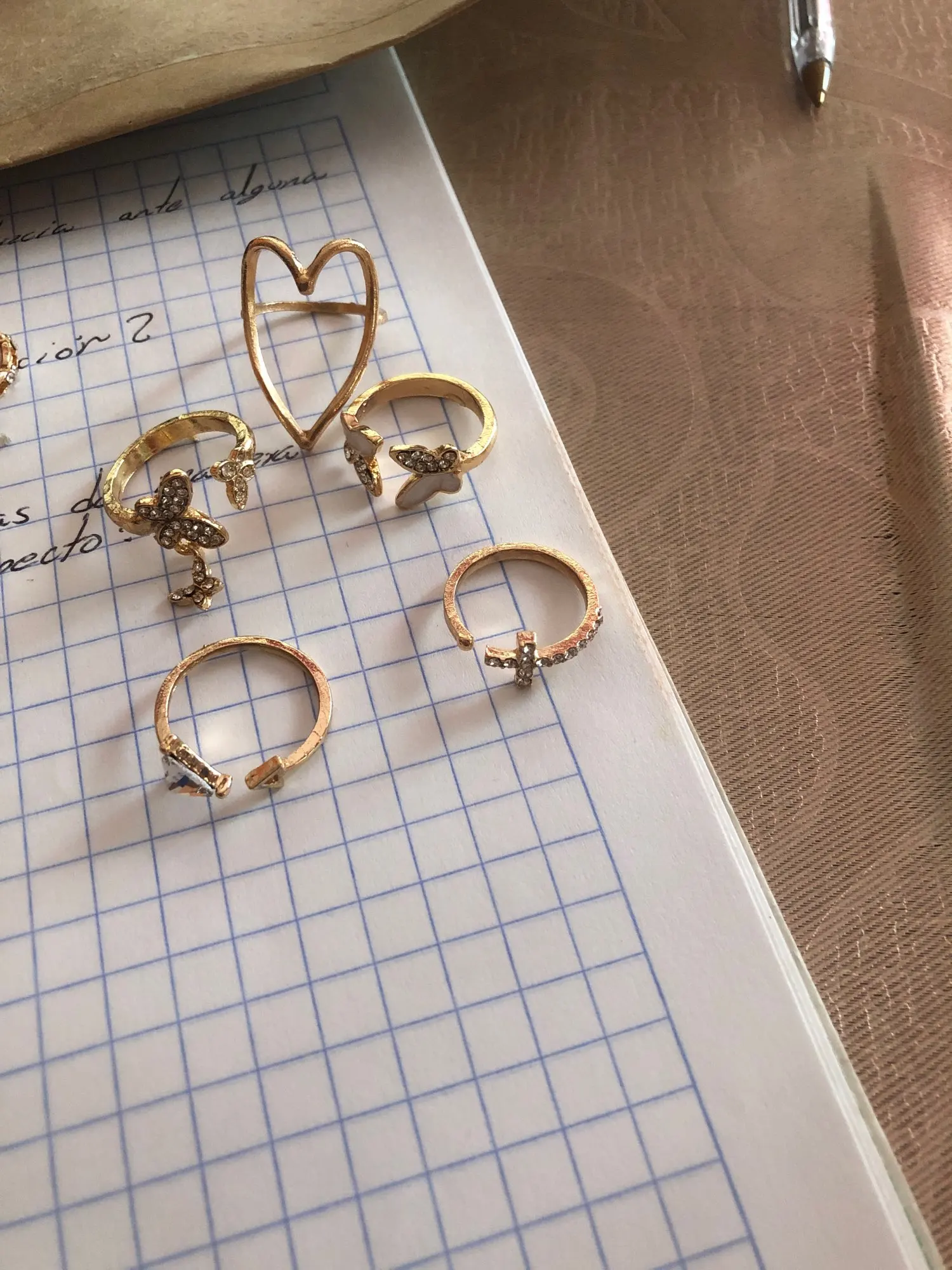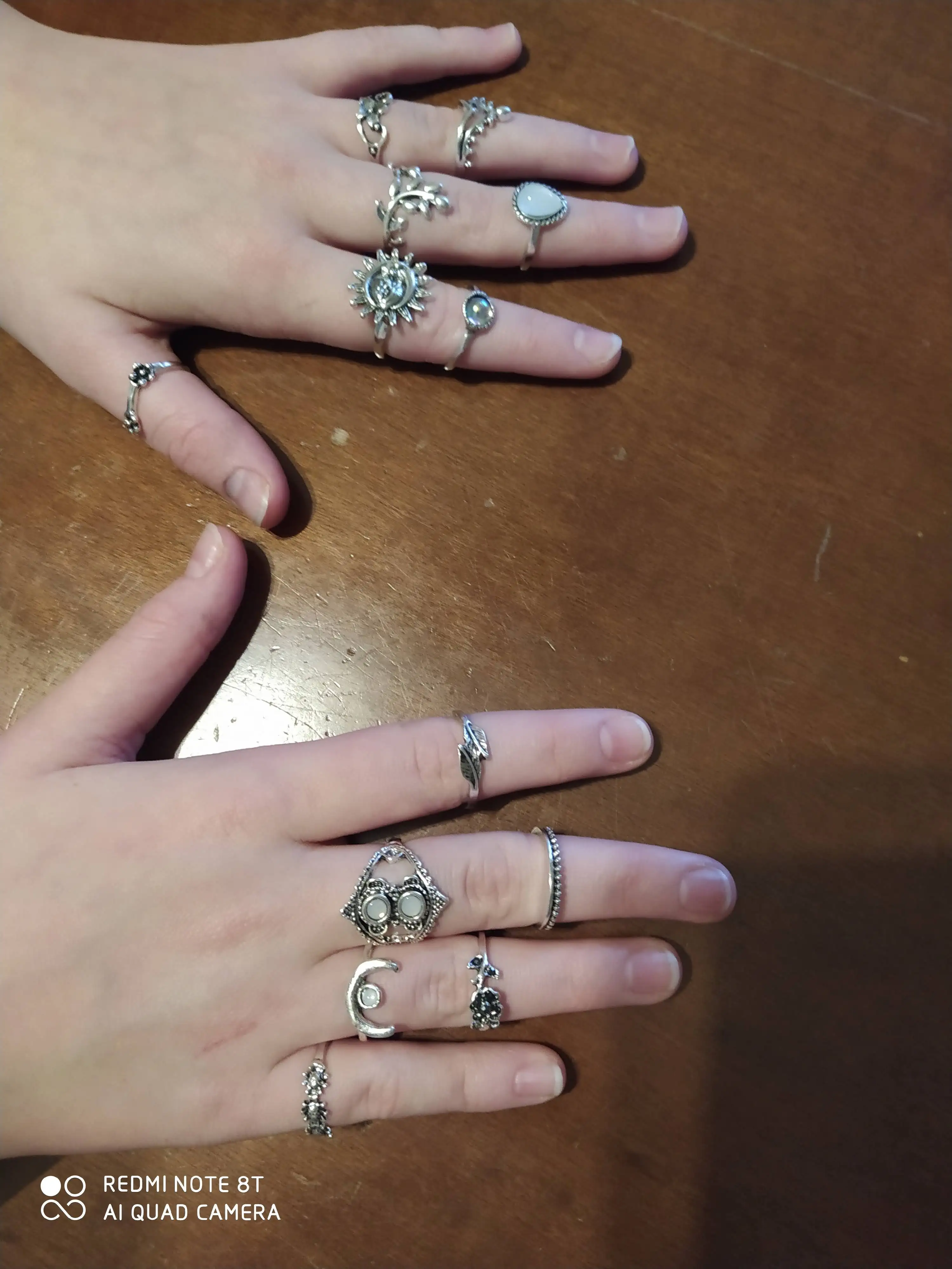 Красивые кольца, изготовленные из прочного металла, я думаю, что они будут тонкими, но они хорошего качества, они выглядят как на фото и достаточно, они мне очень понравились! Кроме того, они прибыли в срок, я закажу другие пакеты колец, отличная покупка!