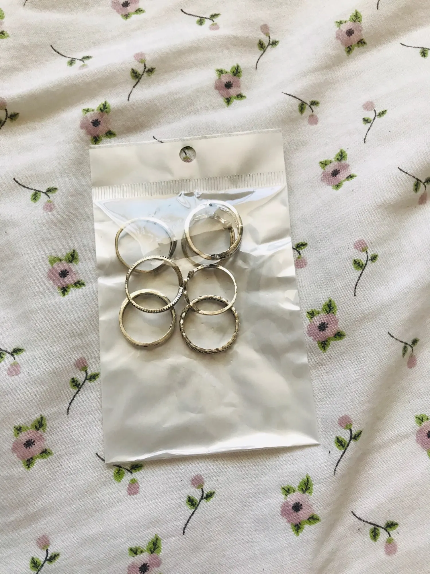 Кольца были слишком большими и все в одном размере. Не регулируется.