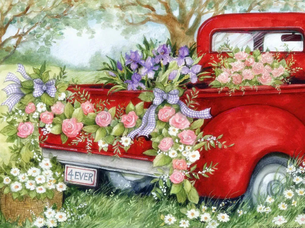 Алмазная картина "сделай сам", Набор для вышивки крестиком, картина с изображением сада, автомобиля, декоративная картина для вышивки Стразы