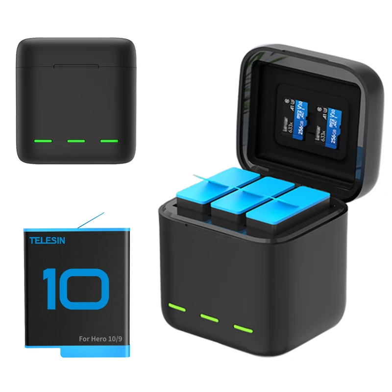 Умное зарядное устройство для аккумуляторов GoPro 10, быстрая зарядка, 1750 мАч, литий-ионный контейнер для хранения батарей, аксессуары для спортивной камеры